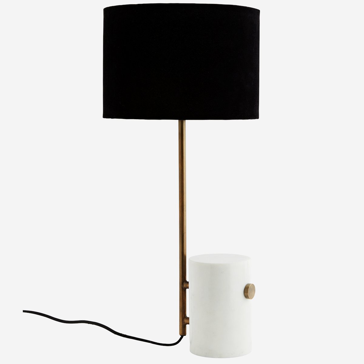 Aksamitna lampa stołowa czarna z marmurową podstawą Madam Stoltz