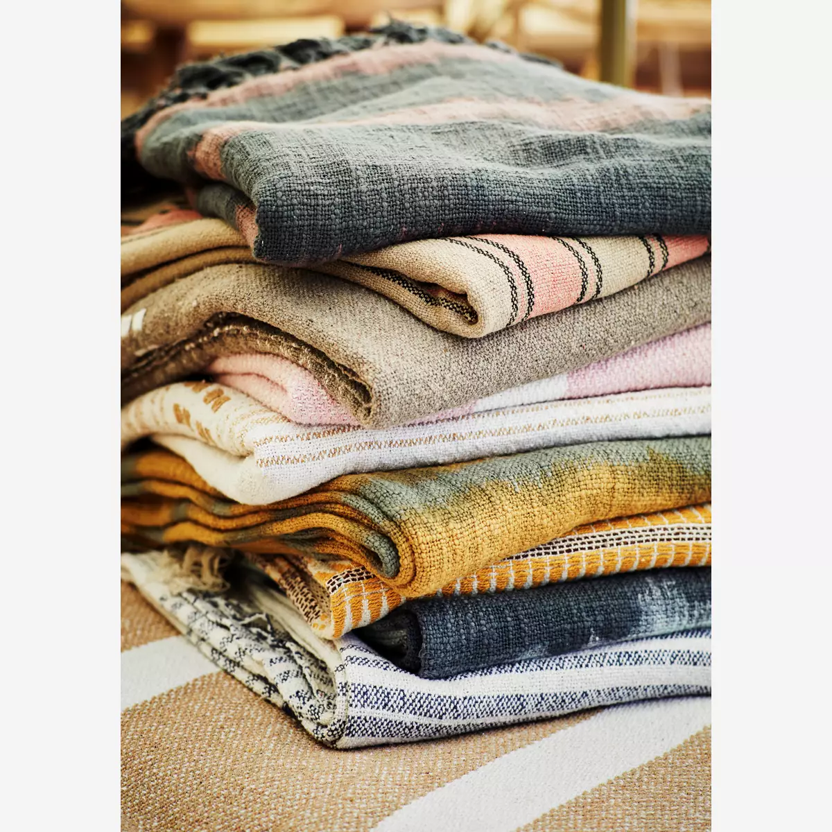 Bawełniana narzuta z renomowanej marki Madam Stoltz. Wyjatkowy i ciekawy dodatek, który ociepli każde wnętrze. Narzuta utkana z nici wykonanej w 100% z wyrzuconej odzieży. W związku z tym mogą wystąpić małe kropki w różnych kolorach. Uważamy, że małe niedoskonałości są absolutnie urocze.