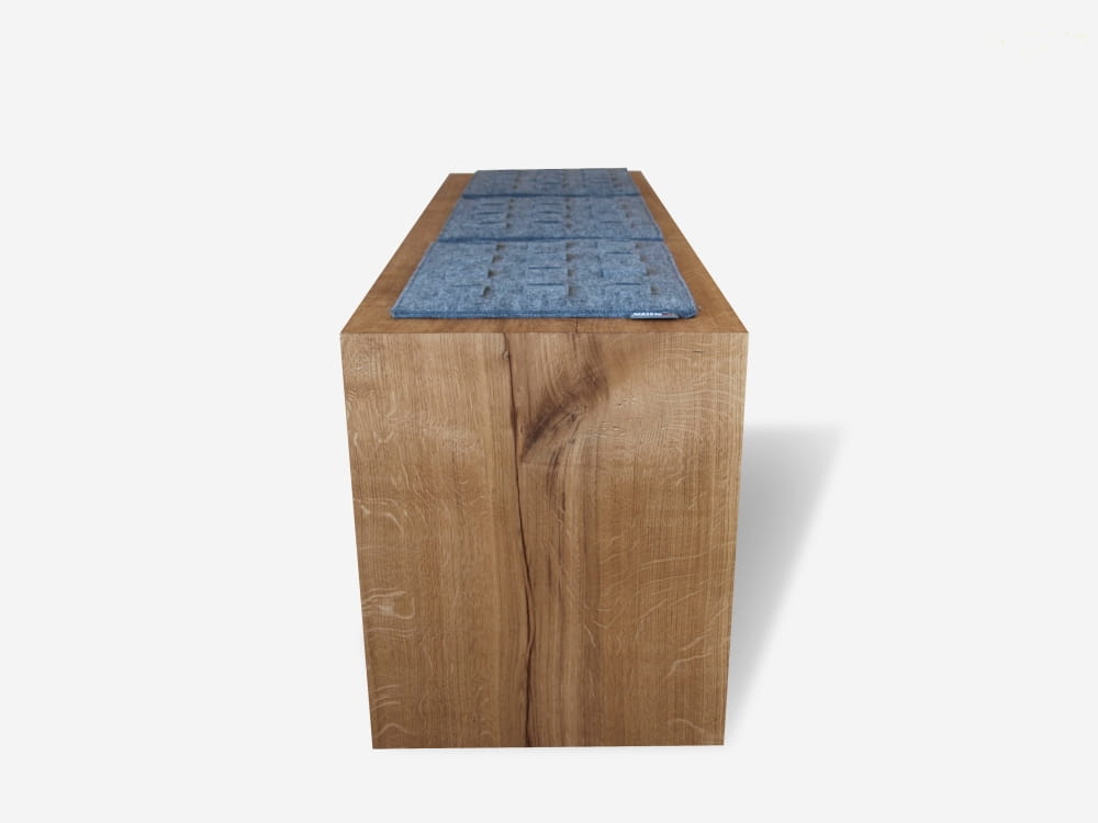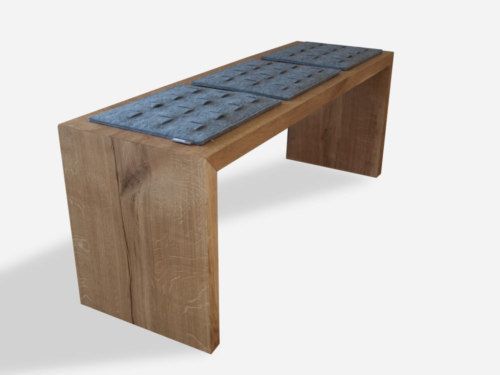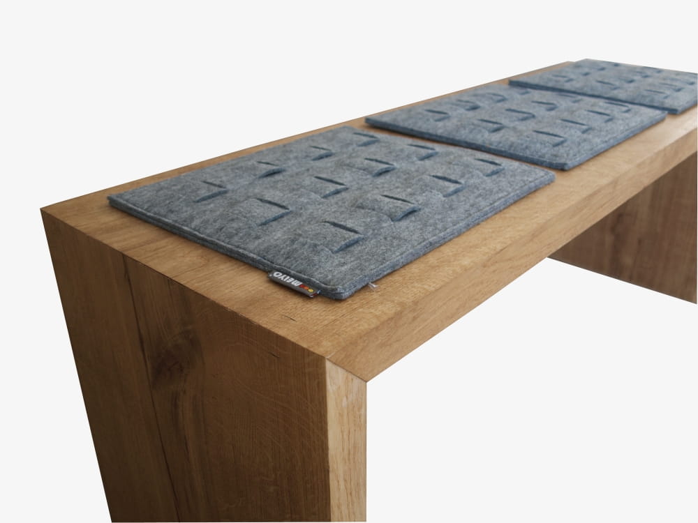 Nie bez powodu mówi się ze najprostrze rzeczy są najlepsze. Prezentujemy ławkę , która odnajdzie swoje miejsce w każdym zakątku domu. Przy stole w jadalni, w holu, przed lóżkiem w sypialni lub w garderobie, wszędzie tam gdzie zechcesz usiąść. Dzieki luźno położonym filcowym podkładką , siedzisko o banalnej bryle zachowuje swój osobliwy charakter i uwidacznia swoją funkcję.