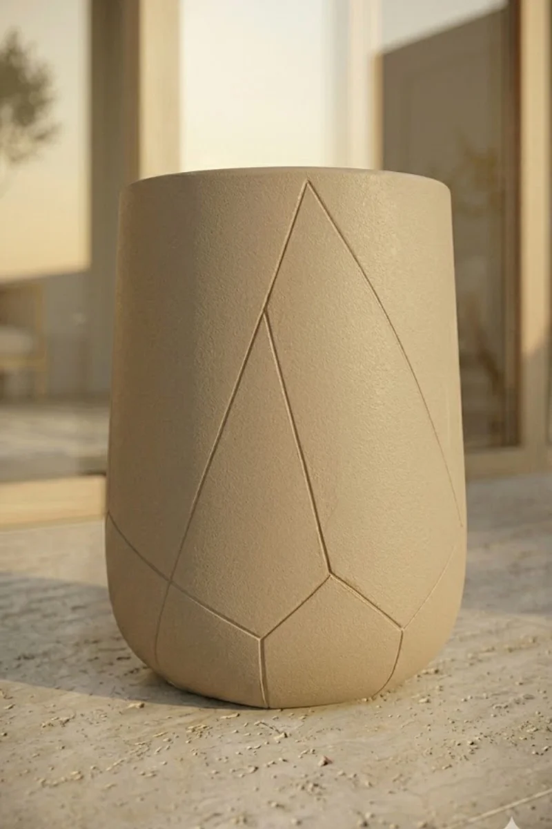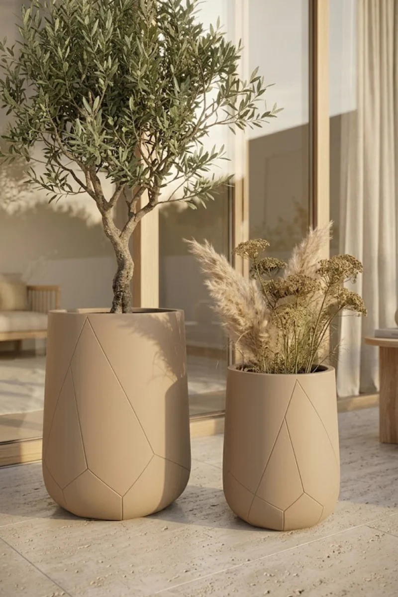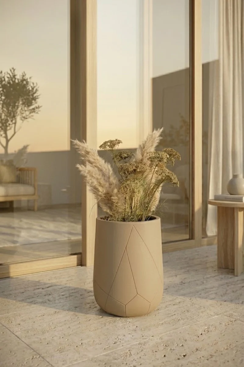 Donica Odelle Tall S to coś więcej niż naczynie dla roślin – to element dekoracyjny, który definiuje charakter wnętrza. Jej smukła sylwetka (45 cm wysokości) w połączeniu z kojącym, beżowym odcieniem tworzy aurę spokoju i luksusowej prostoty. Subtelna, geometryczna faktura powierzchni sprawia, że donica reaguje na światło, dodając aranżacji głębi bez zbędnego przepychu.