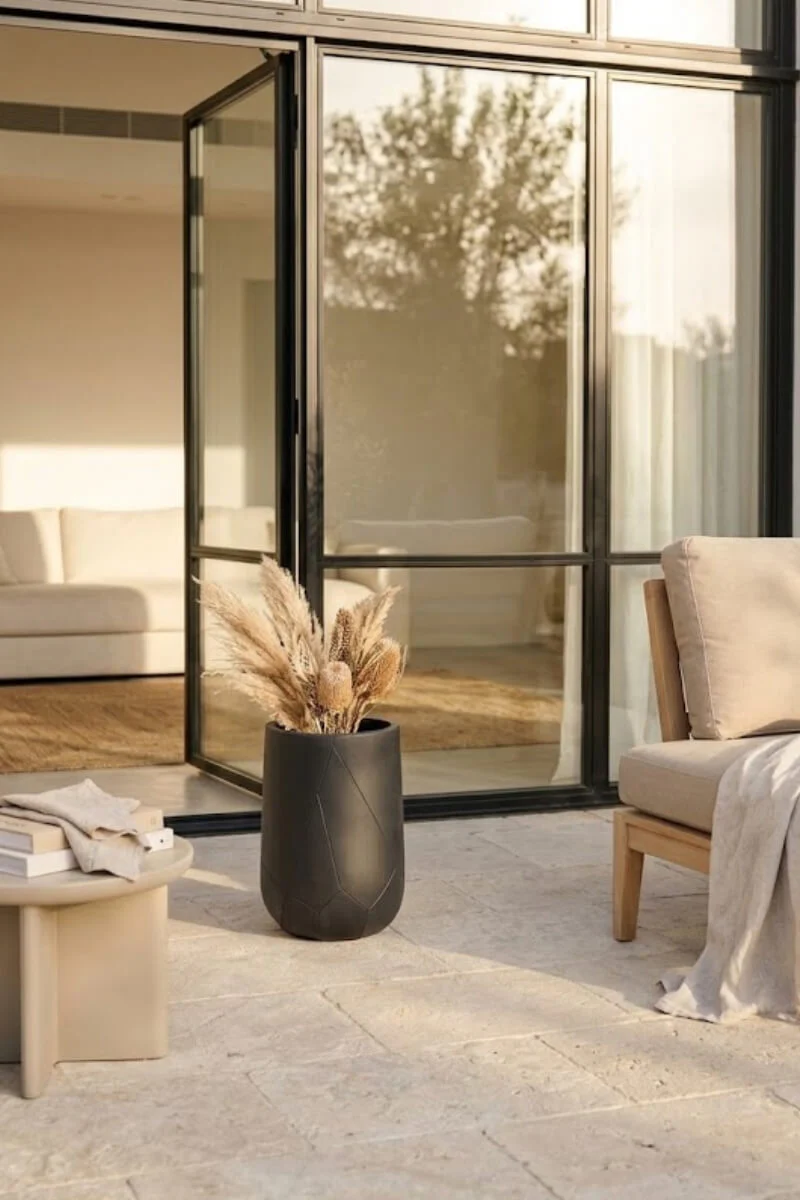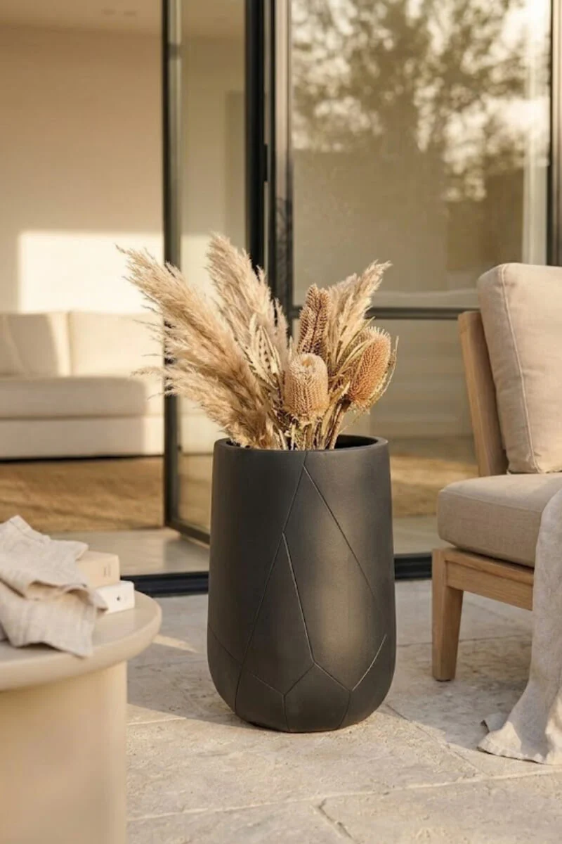 Czarna donica Odelle to uniwersalne narzędzie w rękach projektanta: