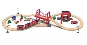 Zawiadowca? Strażak? Ratownik? Z naszym zestawem możesz zostać wymarzonym bohaterem i przeżywać przeróżne przygody! Zestaw zawiera następujące elementy (łącznie 51 el.): pociąg z lokomotywą i dwoma wagonikami + zawiadowca remizę z wozem strażackim + 2 strażaków nosze z karetką + lekarz domek z drzewami + gospodarz tory, most i inne elementy konstrukcyjne Zabawka wykonana jest z drewna i plastiku.