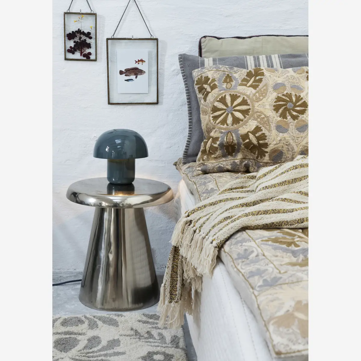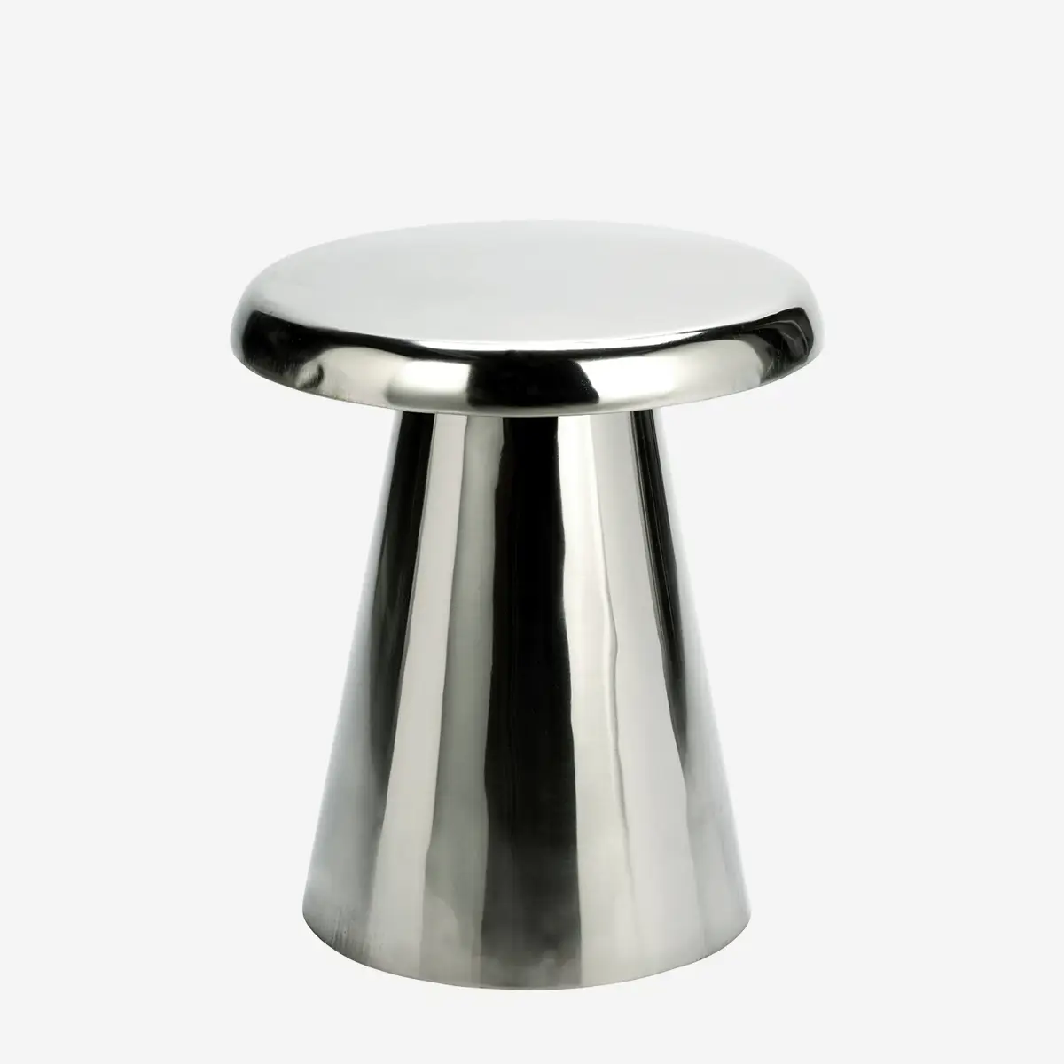Dzięki ręcznemu procesowi emaliowania, stalowe wykończenie posiada subtelne różnice w strukturze, co podkreśla rzemieślniczy rodowód przedmiotu. Stolik jest niezwykle funkcjonalny – jego kompaktowe wymiary i stabilna konstrukcja sprawiają, że idealnie odnajdzie się obok sofy, fotela do czytania czy jako minimalistyczny stolik nocny. Powierzchnia w kolorze stali pięknie odbija światło, dodając wnętrzu nowoczesnego blasku i zdecydowanego charakteru.