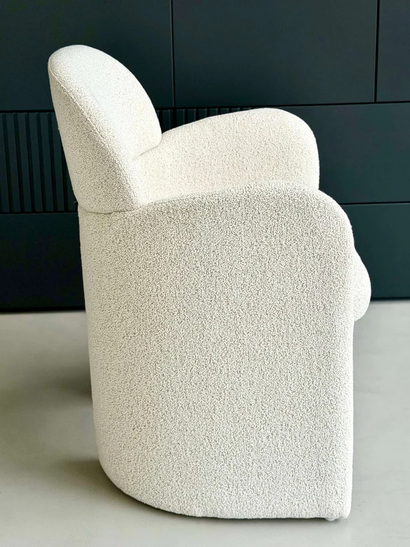 Fotel Belagio to propozycja dla osób ceniących sobie idealne połączenie stylu i funkcjonalności. Jego wyjątkowa, opływowa forma z zaokrąglonymi krawędziami nadaje wnętrzu lekkości i nowoczesnego charakteru. Uniwersalna beżowa kolorystyka sprawia, że fotel z łatwością wkomponuje się w każdą aranżację – minimalistyczną, klasyczną czy loftową.