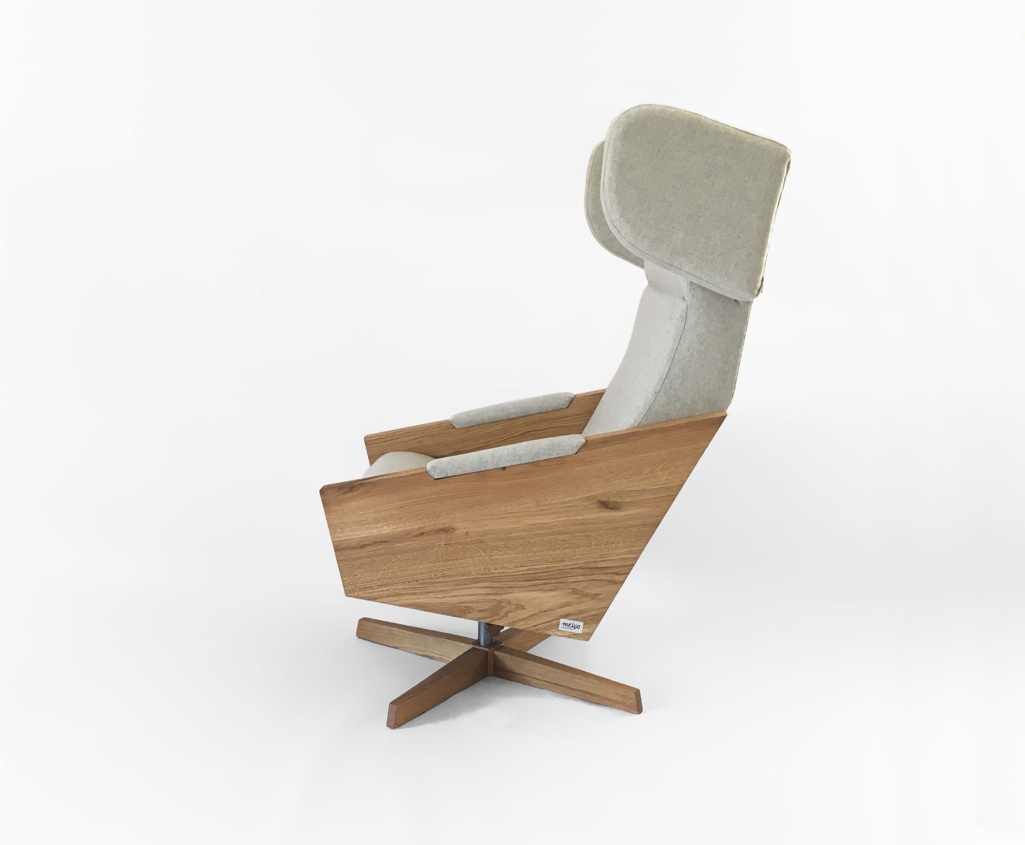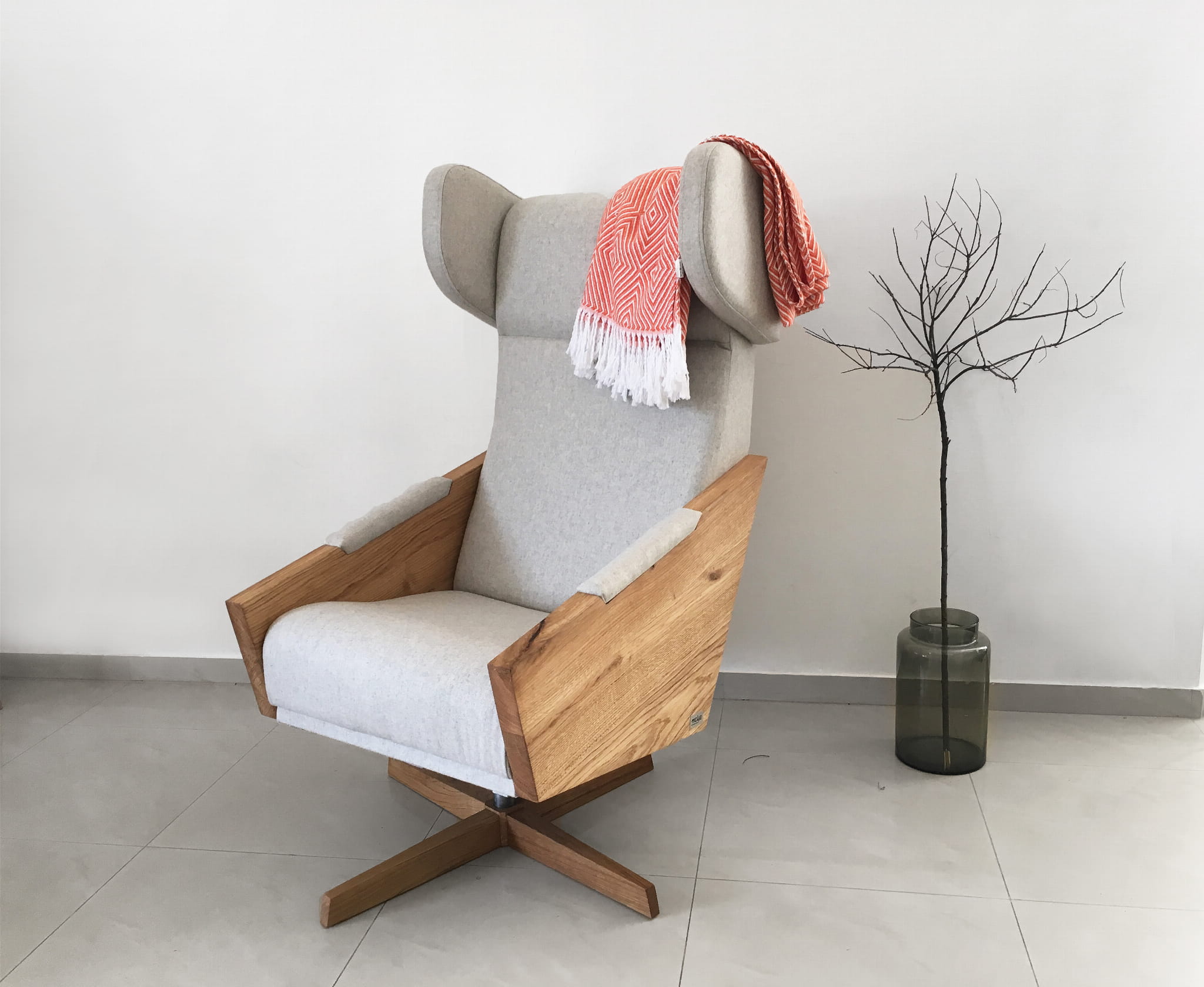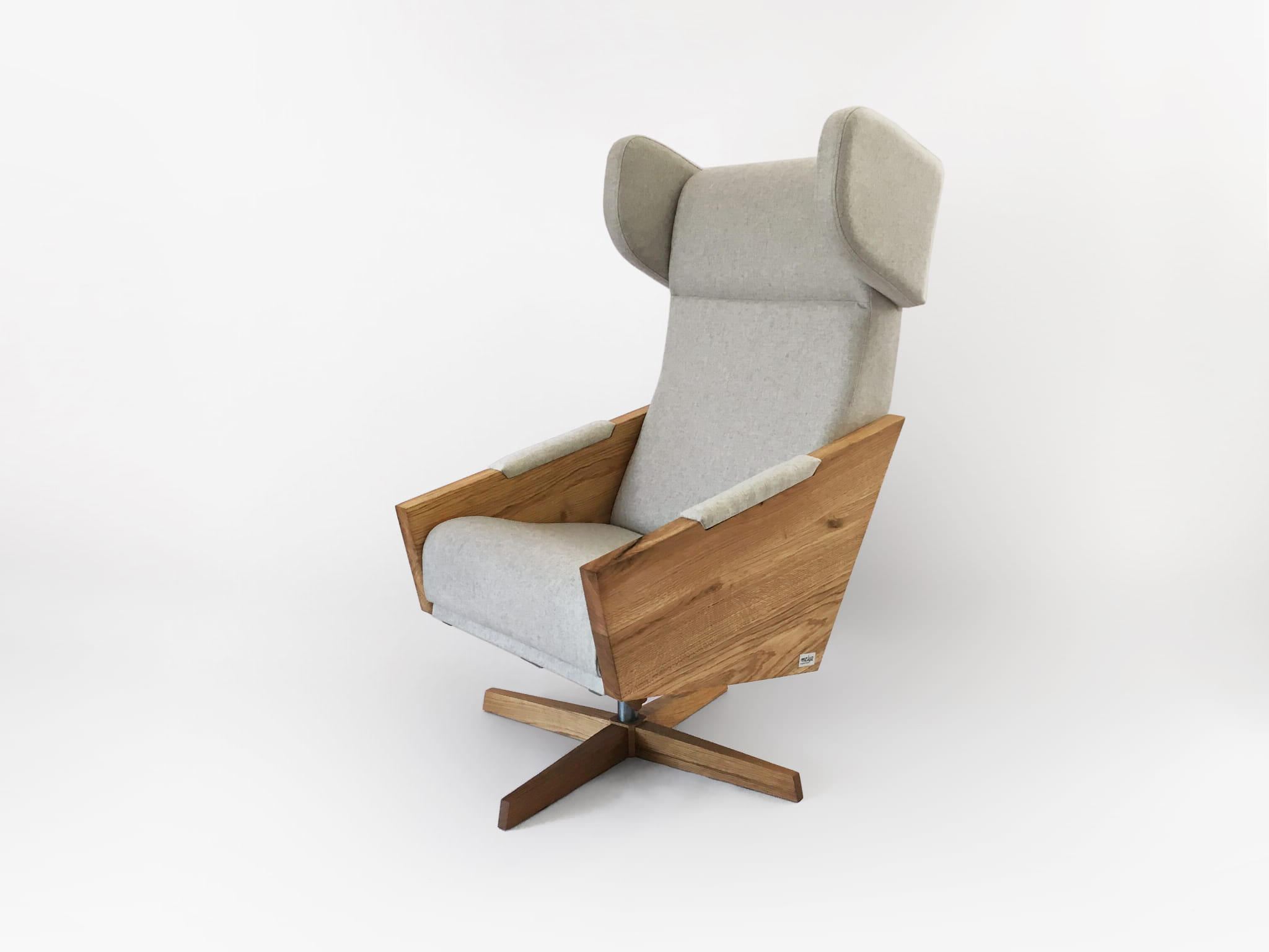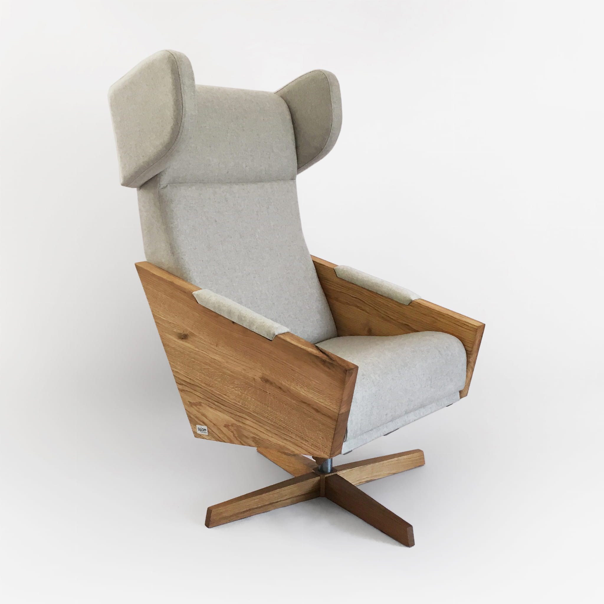 Liu sviwel to "uszak" który został wyposażony w obrotową nogę. Jej autorska, metalowa konstrukcja zaprojektowana jest tak, by fotel nie tylko się obracał ale również delikatnie odchylał do tyłu. Osiągnięty w ten sposób efekt bujania oraz idealnie dobrany kąt pomiędzy siedziskiem a oparciem sprawia, iż fotel jest bardzo komfortowy. Ponadto majestatyczna sylwetka fotela czyni go osobliwym i wyrazistym akcentem wystroju wnętrza.