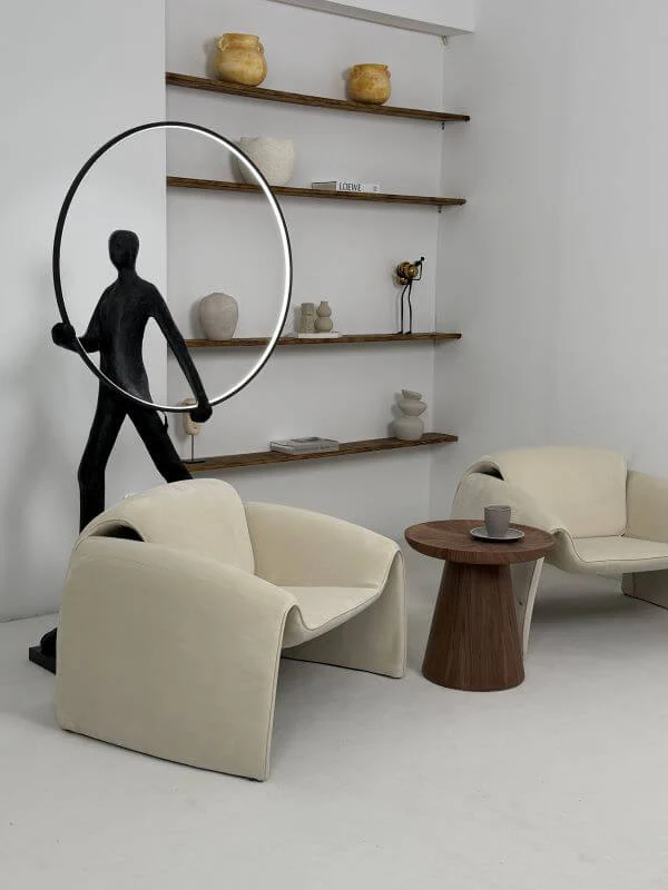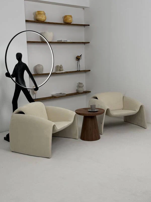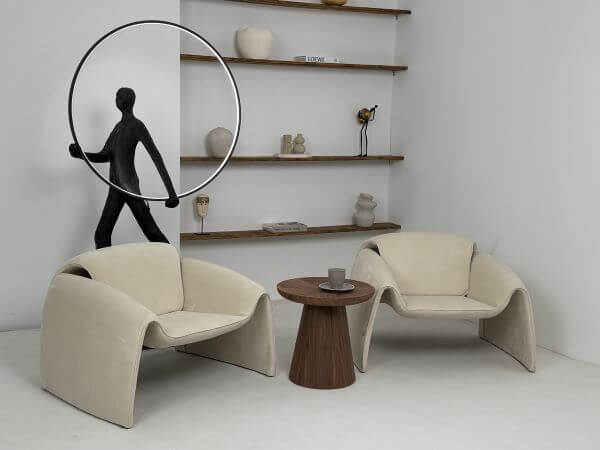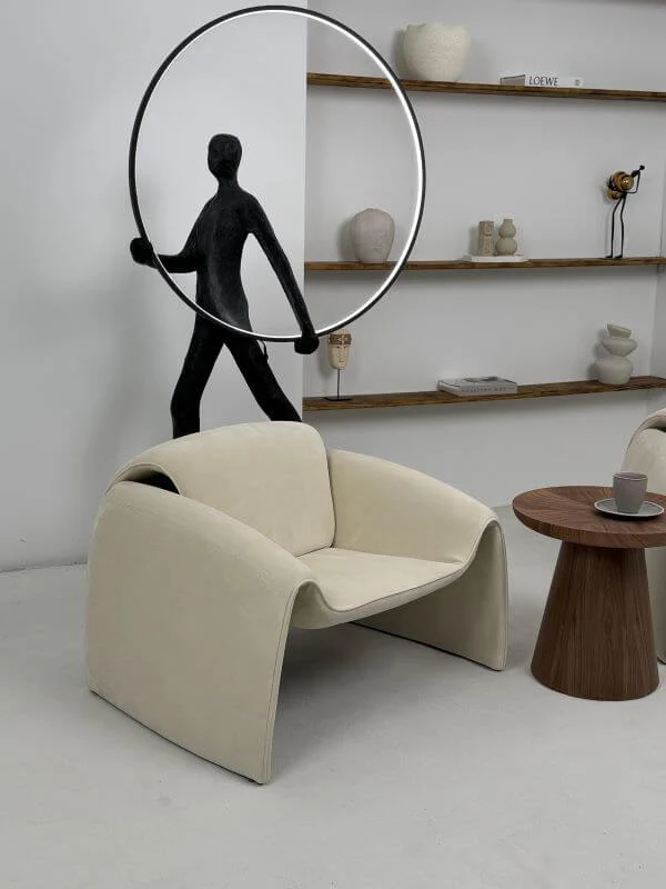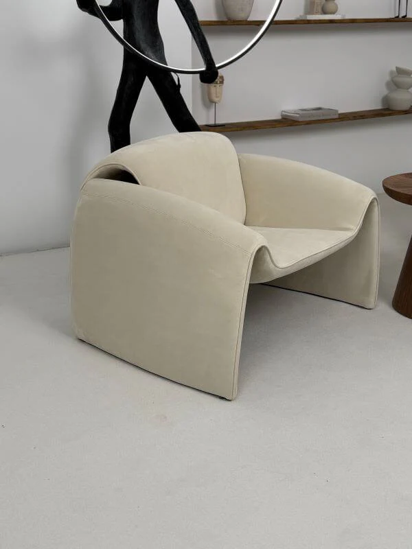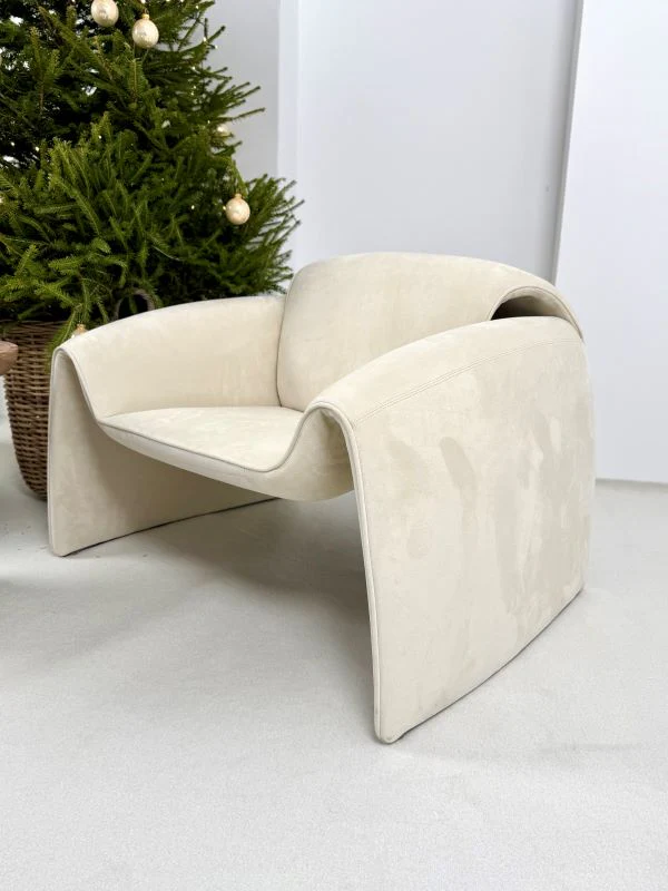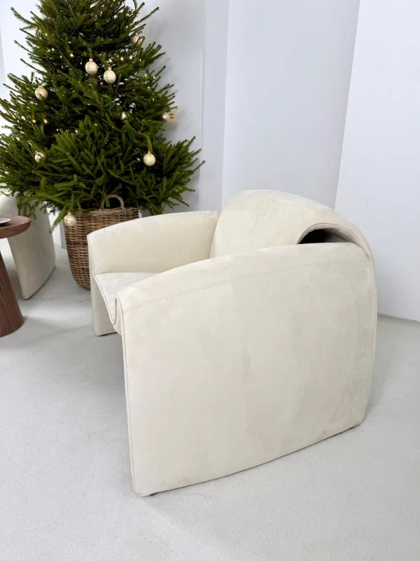 Fotel Raphael - Beżowy to projekt, w którym rzeźbiarska forma spotyka się z bezkompromisową wygodą. Jego unikalna, organiczna linia inspirowana ruchem fal sprawia, że fotel nie tylko służy do siedzenia, ale staje się dynamicznym dziełem sztuki w Twoim salonie.
