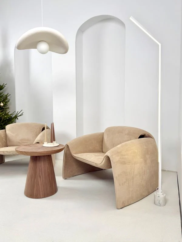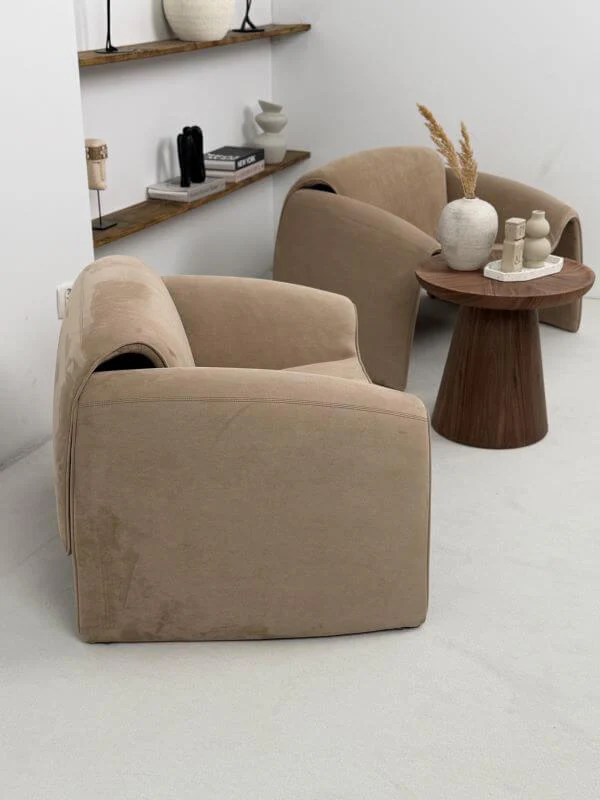 Zmysłowa tkanina Satin Velvet: Obicie wykonano z innowacyjnej tkaniny z ultracienkich włókien. W dotyku przypomina ona szlachetny zamsz lub matową skórę, łącząc elegancję z niesamowitą miękkością. To materiał, który "pracuje" ze światłem, nadając fotelowi subtelny, satynowy blask.
