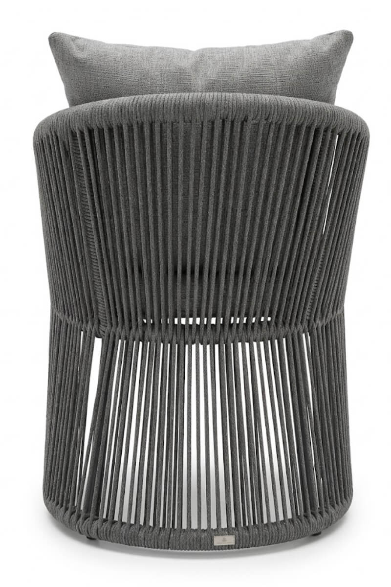 Kompaktowa ergonomia: Szerokość 55 cm sprawia, że fotel jest niezwykle ustawny – idealnie odnajdzie się zarówno w rozbudowanych strefach lounge, jak i na kameralnych, nowoczesnych balkonach.