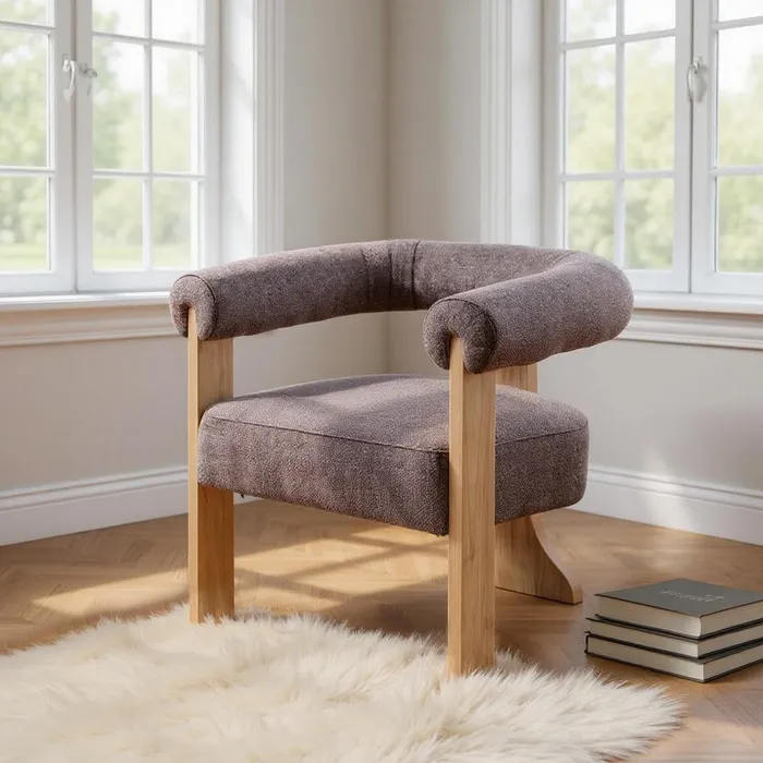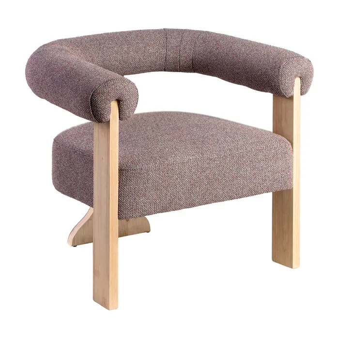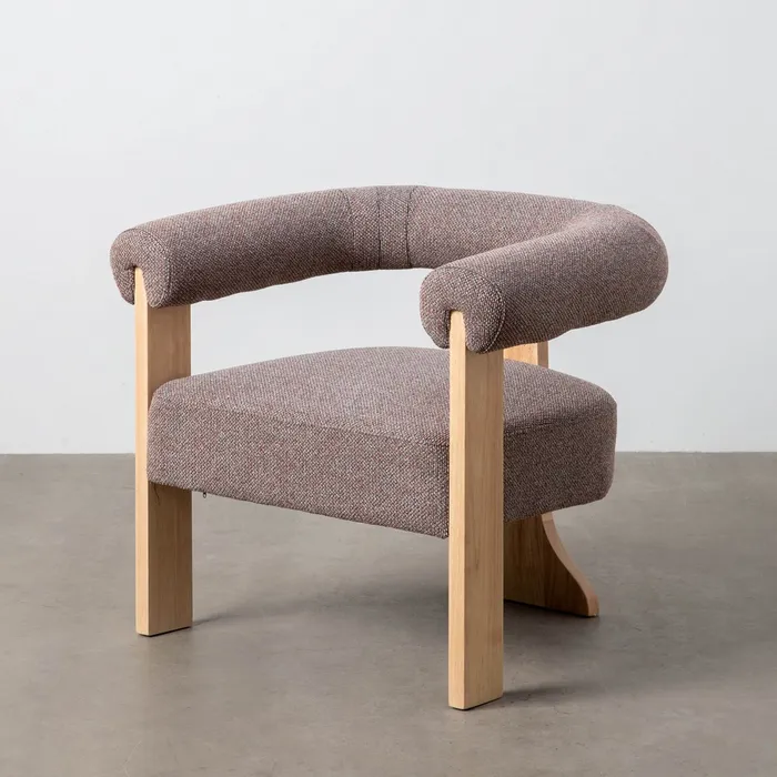 Odkryj minimalistyczny design i maksymalny komfort z fotelem, który odmieni Twój kącik do relaksu. Jego prosta, geometryczna forma połączona z tapicerką o wyjątkowej, plecionej fakturze w stonowanym odcieniu szaro-różowym tworzy idealne miejsce do odpoczynku. Niskie, szerokie siedzisko i subtelne oparcie zapewniają wygodę, a proste, drewniane nóżki dodają mu lekkości i stabilności. Ten fotel to doskonały wybór dla miłośników nowoczesnego stylu i funkcjonalności.