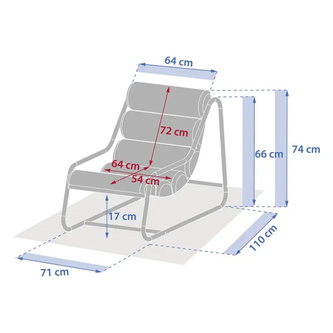 Stabilność na każdym podłożu: Solidna stalowa rama posiada regulowane nóżki, co pozwala na idealne wypoziomowanie fotela na trawie, deskach czy chropowatym kamieniu.
