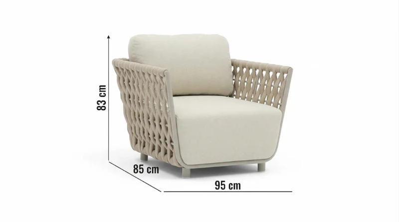 Fotel Serano Lounge to esencja nowoczesnego luksusu, która zamieni Twój taras w prestiżową strefę wypoczynku. Jego szeroka, niemal monumentalna bryła (95 cm szerokości!) oferuje przestrzeń, która dosłownie otula użytkownika, zapewniając poczucie intymności i spokoju. Szampański odcień plecionki subtelnie rozświetla otoczenie, nadając aranżacji lekkości i śródziemnomorskiego sznytu.