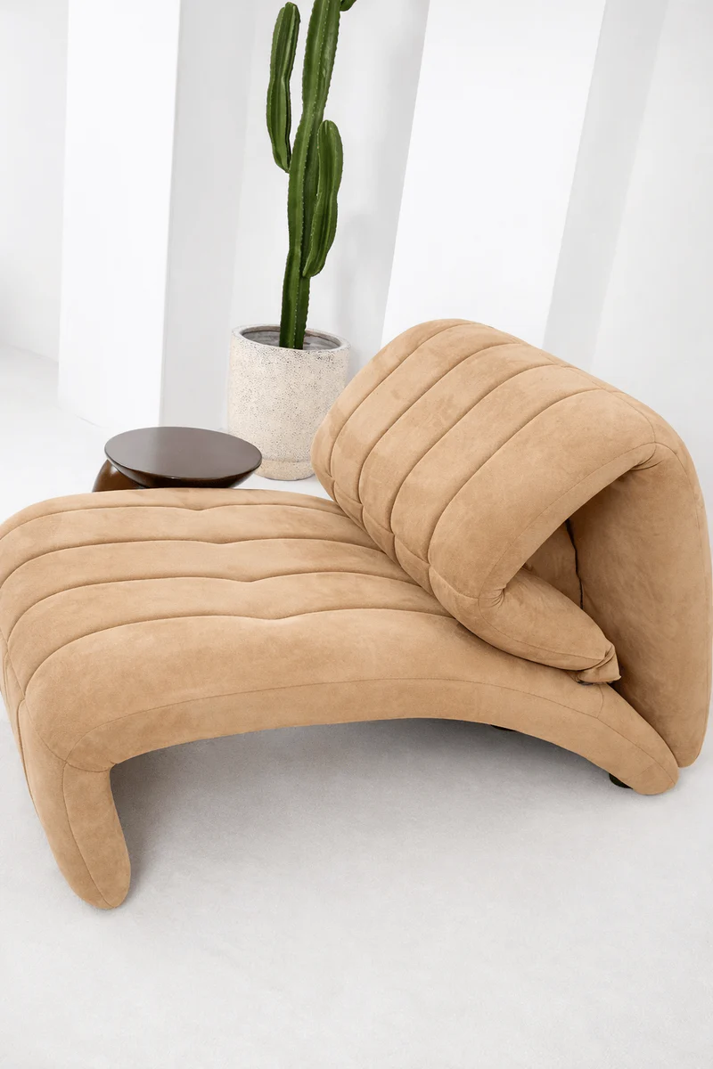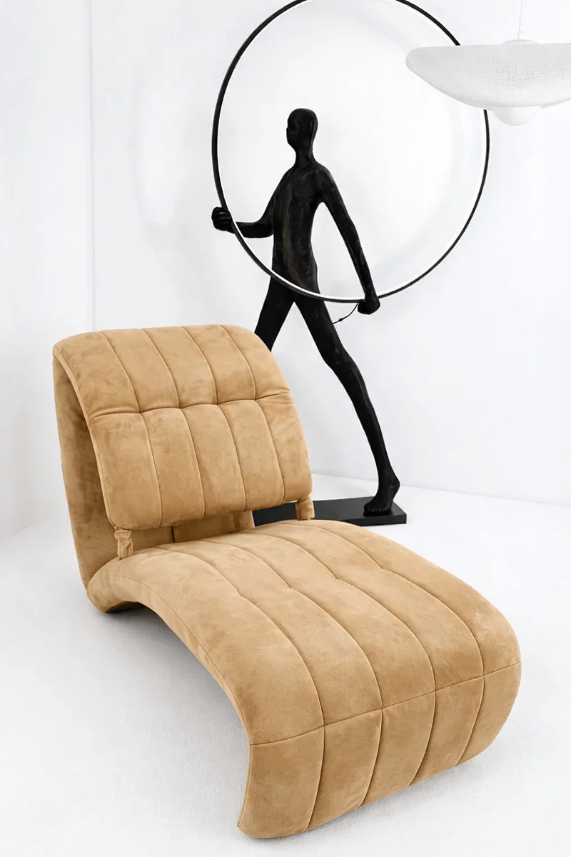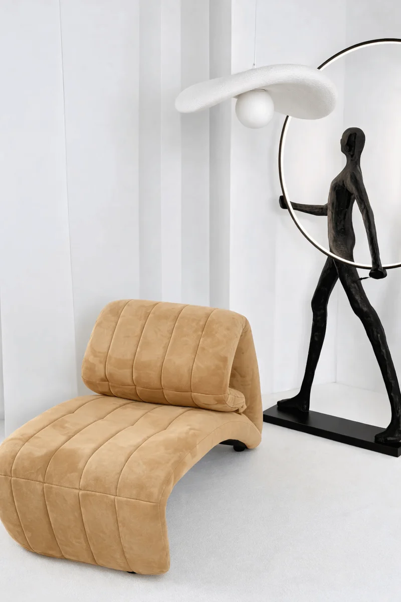 Rzeźbiarska sylwetka: Dynamiczna, opływowa linia fotela sprawia, że mebel prezentuje się lekko i nowocześnie. To idealny punkt centralny salonu, który przyciąga wzrok i nadaje aranżacji indywidualnego charakteru.