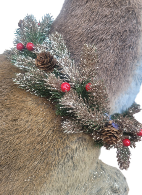 To, co czyni tę ozdobę idealną na sezon świąteczny, to jej miękkie futerko oraz elegancki, ozdobny wieniec świąteczny zawieszony na szyi. Figurka wspaniale wpisuje się w bożonarodzeniową atmosferę, tworząc wyjątkowy klimat natury w każdej przestrzeni. Doskonale sprawdzi się w domowych aranżacjach, a także jako przyciągający wzrok element wystroju w studiach fotograficznych, biurach czy witrynach sklepowych. Jeleń "natura" pozwala w prosty sposób stworzyć niepowtarzalny i magiczny klimat.