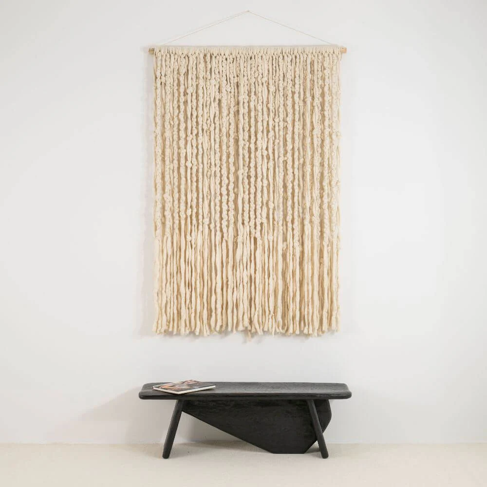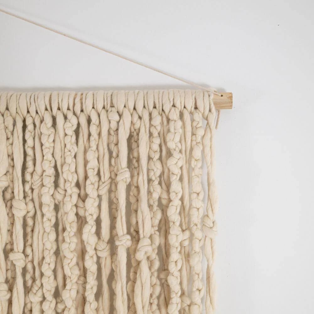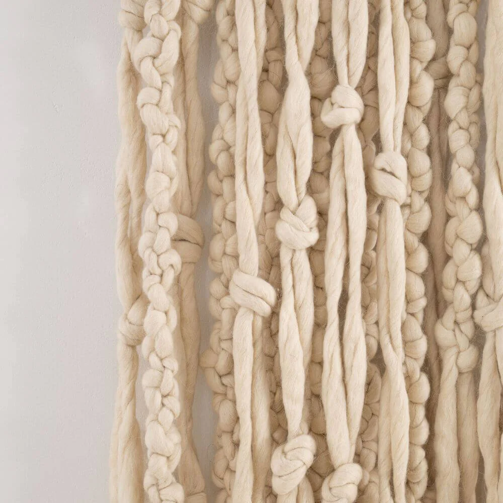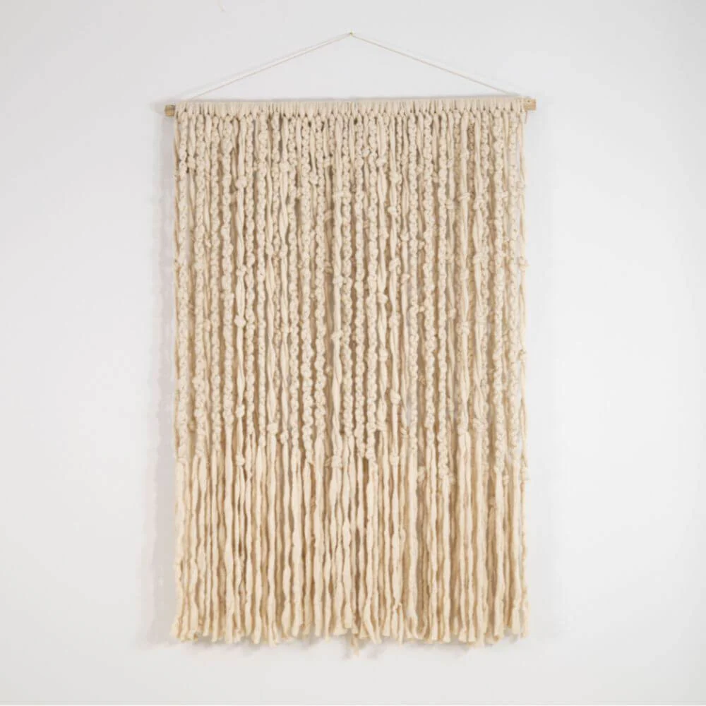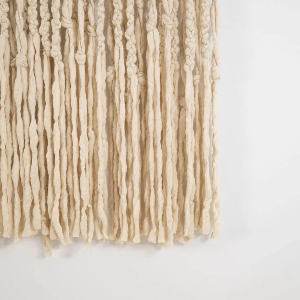 Zmień swoją ścianę w miękką rzeźbę. Ten największy w naszej kolekcji kilim to prawdziwa celebracja tekstury i rzemiosła. Zamiast płaskiego płótna, oferujemy Ci gęstą kaskadę swobodnie opadających, wełnianych frędzli, które tworzą trójwymiarowy efekt głębi. Jego imponujący format sprawia, że jest to dekoracja dla odważnych, ceniących luksus płynący z naturalnych materiałów i autentycznego, ręcznego wykonania.