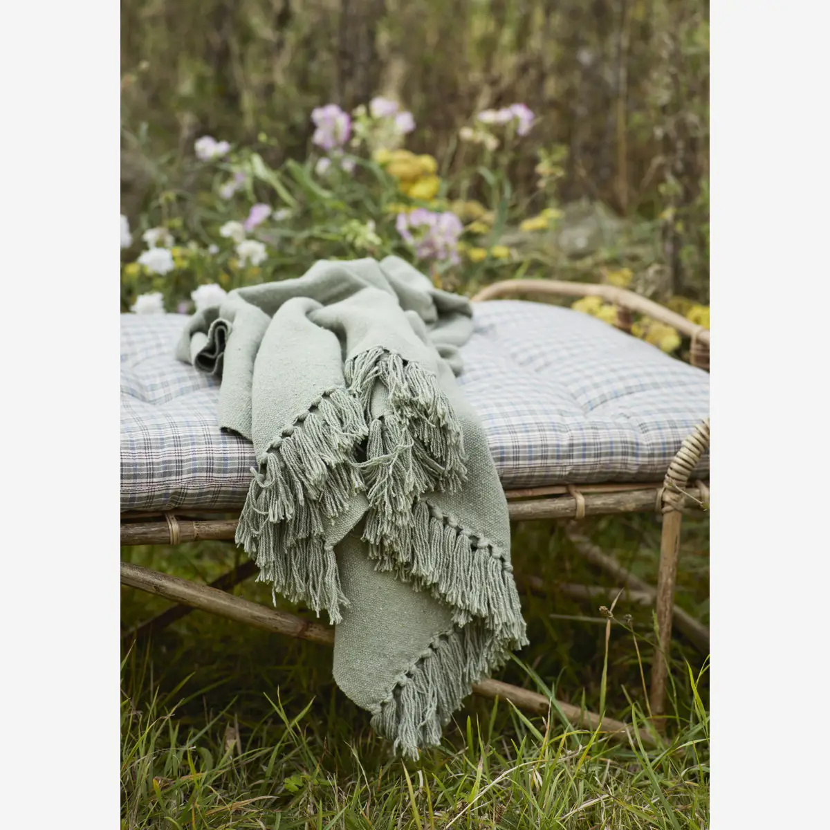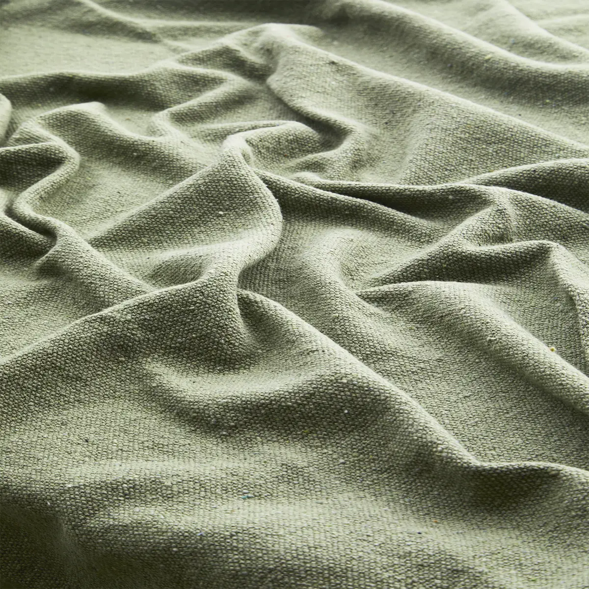 Miękki koc z recyklingowanej bawełny w kolorze zgaszonej zieleni to idealny wybór do każdego wnętrza, które ceni sobie ekologiczną produkcję oraz komfort. Wykonany w 100% z przetworzonych materiałów tekstylnych, każdy koc jest unikalny, a jego kolorystyka może się różnić, co dodaje mu wyjątkowego charakteru. Jest wystarczająco duży, by zapewnić wygodę podczas odpoczynku, a przy tym łatwy w pielęgnacji — można go prać w pralce w 40°C.