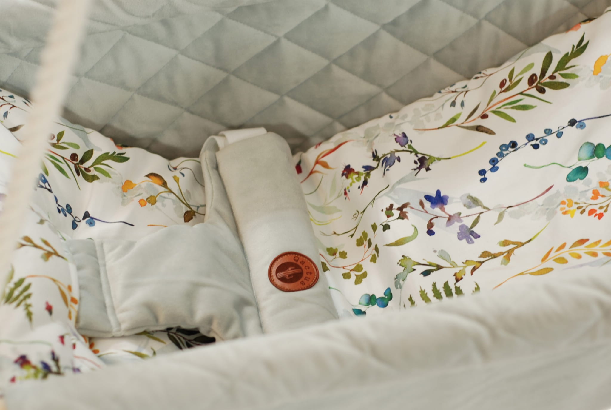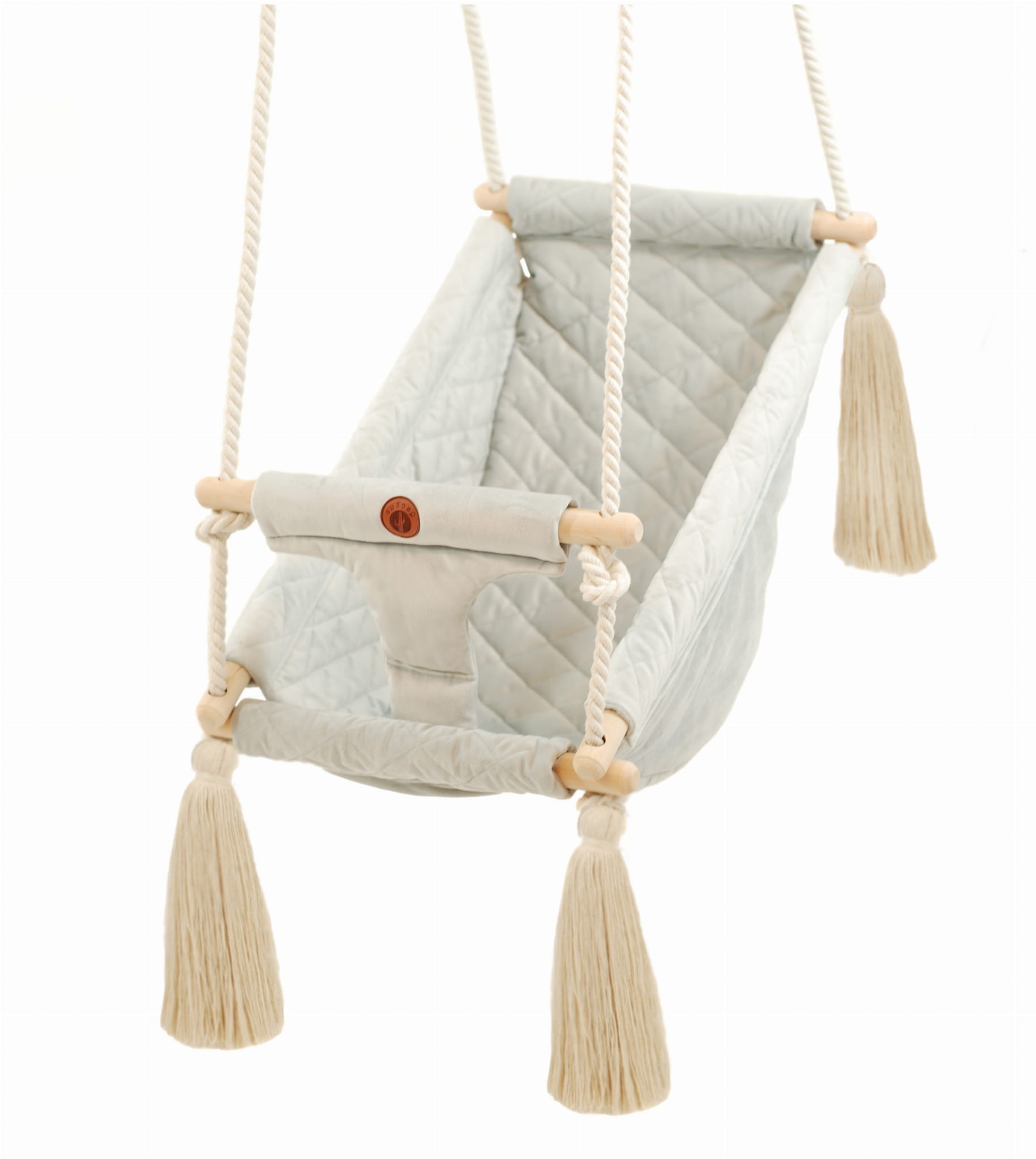 Qalama jest wykonana z tkaniny VELVET ULTRA SOFT, który jest delikatniejszy i milszy w dotyku od popularnego velvetu. Tkanina ta jest nowością w Polsce. Wykorzystujemy tylko najwyższej jakości materiały z certyfikatem OEKO-TEX® Standard 100, które są bezpieczne dla dzieci. Wewnętrzna strona huśtawki jest wykonana z velvetu pikowanego a zewnętrzna z gładkiego. Dzięki temu oprócz wielofunkcyjnego zastosowania QALAMY, uzyskaliśmy produkt o niebanalnym wyglądzie.