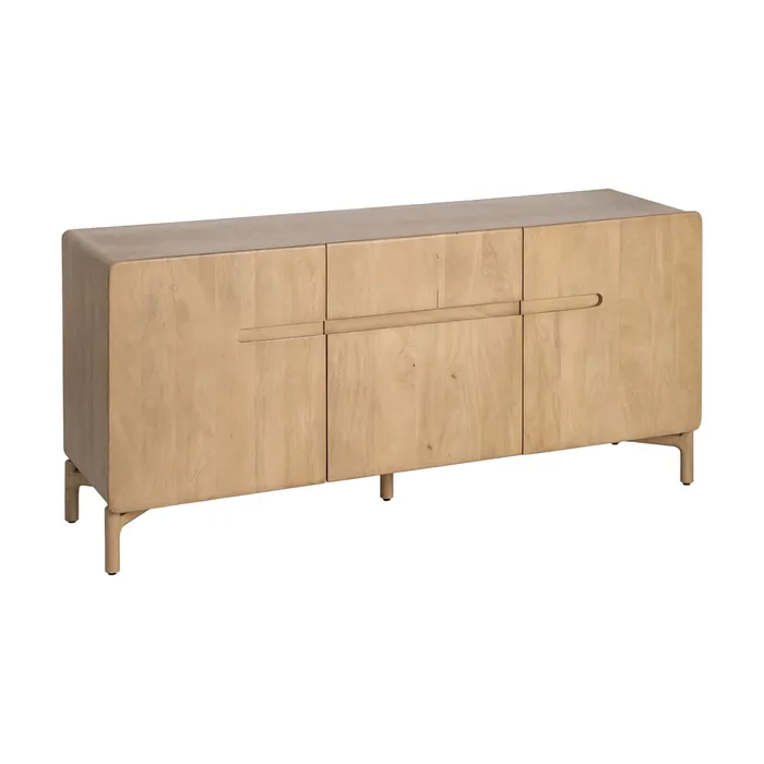 Lite drewno mango i minimalistyczna forma sprawiają, że komoda z drewna mango o długości 160 cm to mebel, który wnosi do wnętrza spokój oraz szlachetność naturalnych materiałów. Dzięki unikalnemu układowi słojów i ciepłej barwie egzotycznego drewna, bufet ten staje się autentyczną ozdobą salonu lub jadalni, doskonale wpisując się w estetykę modern organic, loftową czy skandynawską.