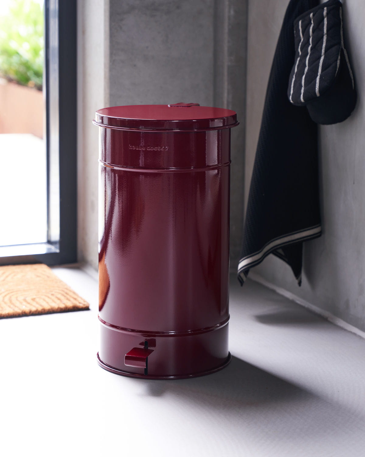 Stylowy i klasyczny kosz na śmieci z pedałem od House Doctor. Użyj go jako kosza na śmieci w biurze lub ustaw kilka pojemników w kuchni, aby sortować odpady domowe. Głęboki burgund jest na tyle ponadczasowy i relaksujący, że pasuje do każdego stylu wnętrza. Jest to niezwykle dekoracyjny dodatek do Twojego wnętrza.