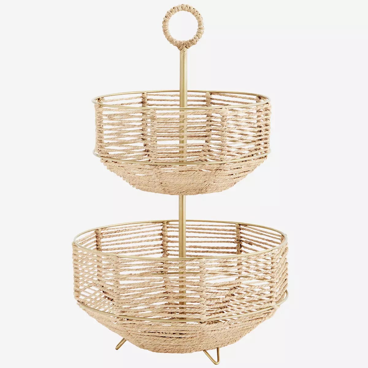 Koszyk wyplatany ręcznie z renomowanej marki Madam Stoltz. Dwa pięterka zapewniają funkcjonalność i wygodne przechowywanie. Będzie ciekawym i praktycznym dodatkiem do każdego wnętrza w stylu skandynawskim, rustykalnym czy boho.