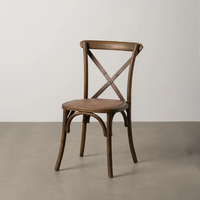 Krzesło z drewna i rattanu-brązowe