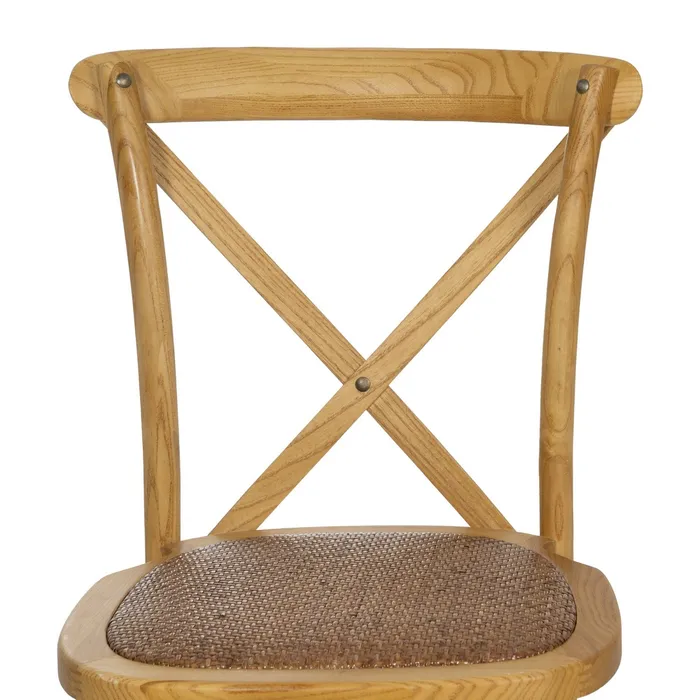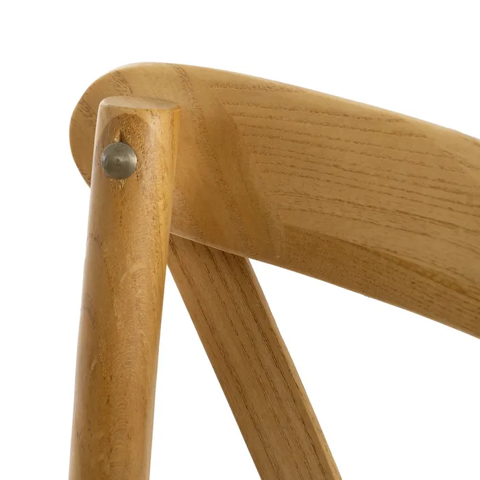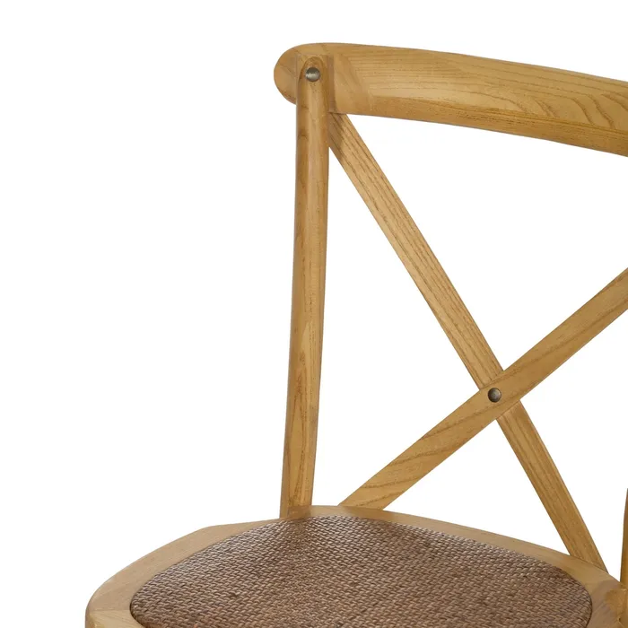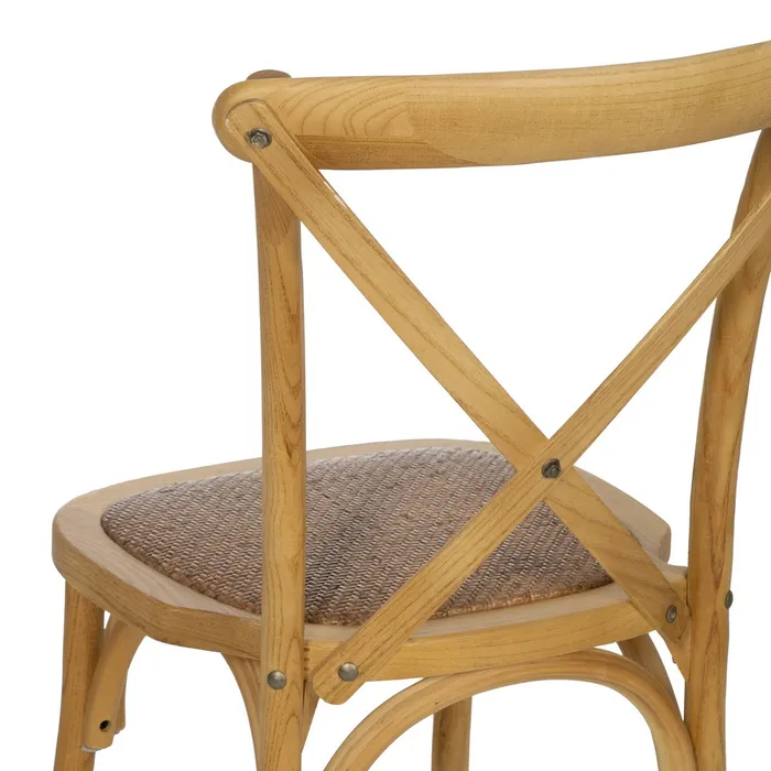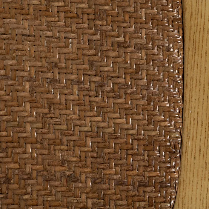 Siedzisko krzesła, misternie plecione z naturalnego rattanu, dodaje lekkości i tekstury całej konstrukcji. Rattan, w swoim naturalnym, jasnym kolorze, wprowadza ciepło i przytulność, a jego elastyczność sprawia, że siedzisko jest wygodne i sprężyste. Plecionka jest wzmacniana, aby zapewnić wytrzymałość, a jednocześnie przewiewna, co zwiększa komfort użytkowania.