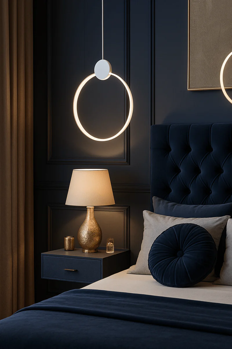 Monochromatyczna czystość: Całość wykończona w bieli nadaje lampie lekkości. Na tle jasnego sufitu pierścień wydaje się niemal lewitować, a w zestawieniu z ciemniejszymi kolorami ścian stanowi mocny, graficzny akcent.