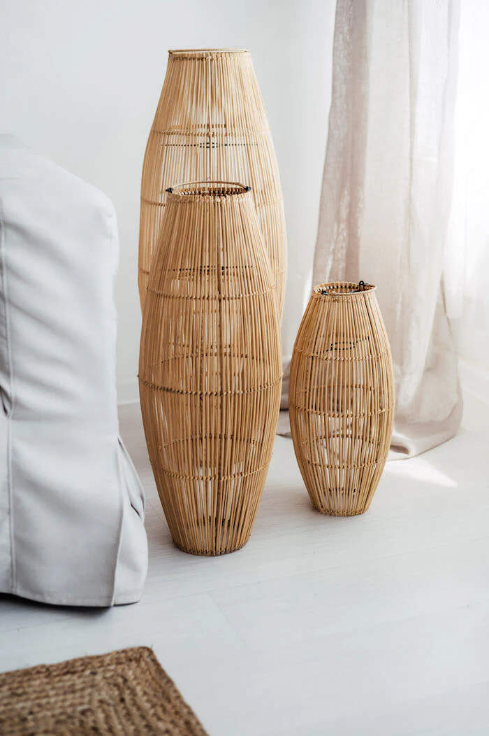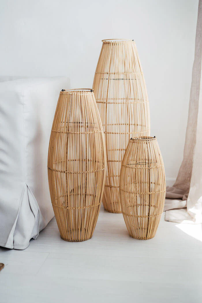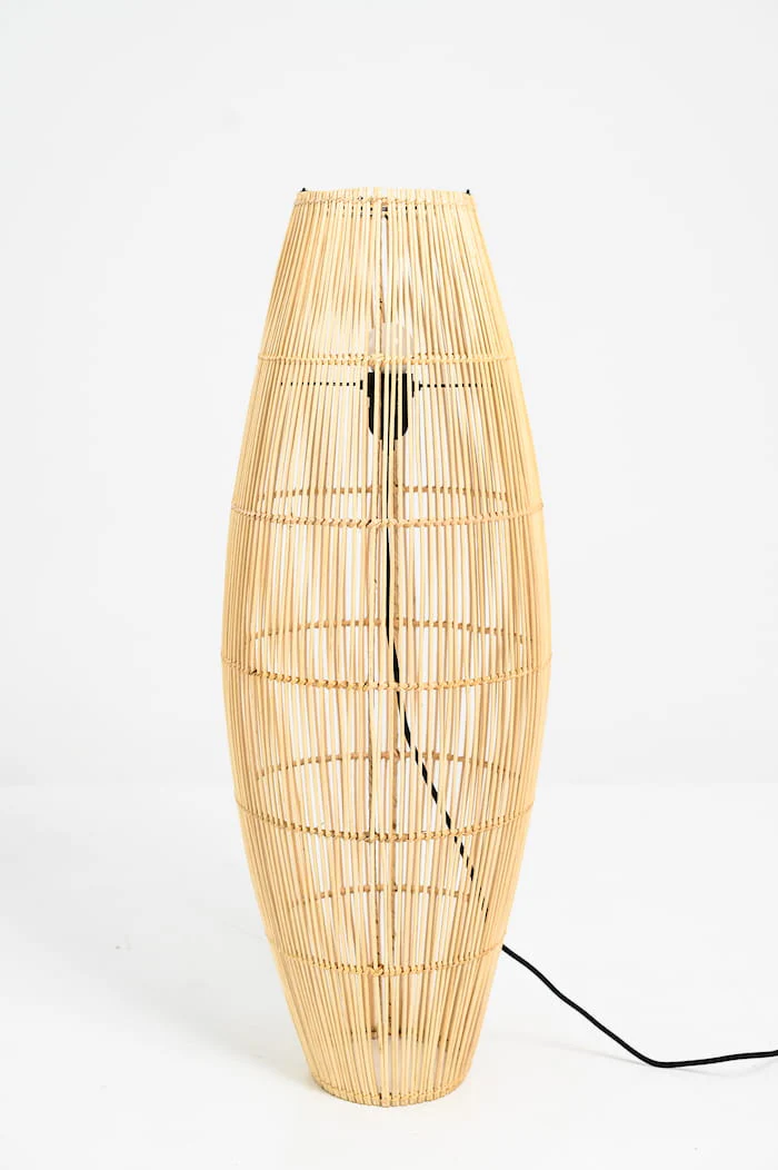 Imponująca sylwetka lampy podłogowej Maxi L to propozycja dla tych, którzy szukają oświetlenia o dużej skali i wyrazistym, organicznym charakterze. Dzięki wysokości 83 cm, ten największy model z serii Maxi przestaje być jedynie dodatkiem, a staje się pełnoprawnym elementem wyposażenia, który potrafi zdominować przestrzeń swoją naturalną szlachetnością. Wykonana z gęsto plecionego rattanu, lampa ta wnosi do domu spokój i harmonię, przywodząc na myśl luksusowe wnętrza ekologicznych kurortów.