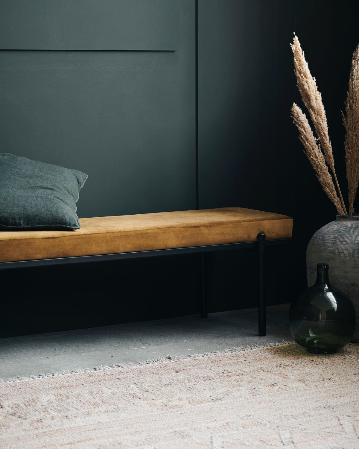 Ławka Lao od House Doctor. Aksamitna tkanina sprawia, że piękny kolor ożywia, a jednocześnie dodaje Twojemu domowi klasy i elegancji.
