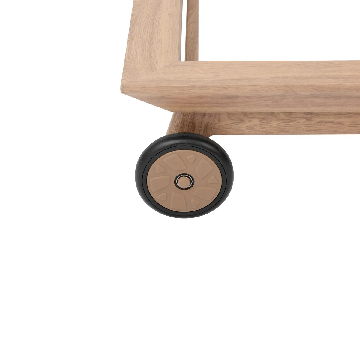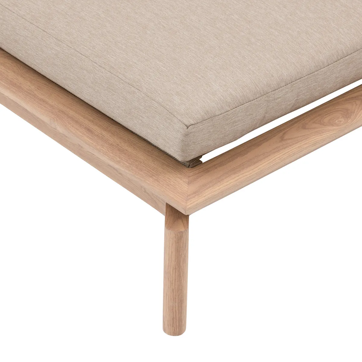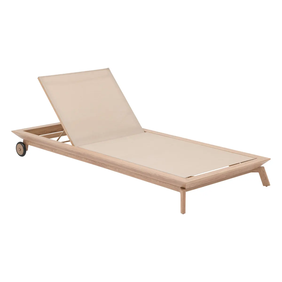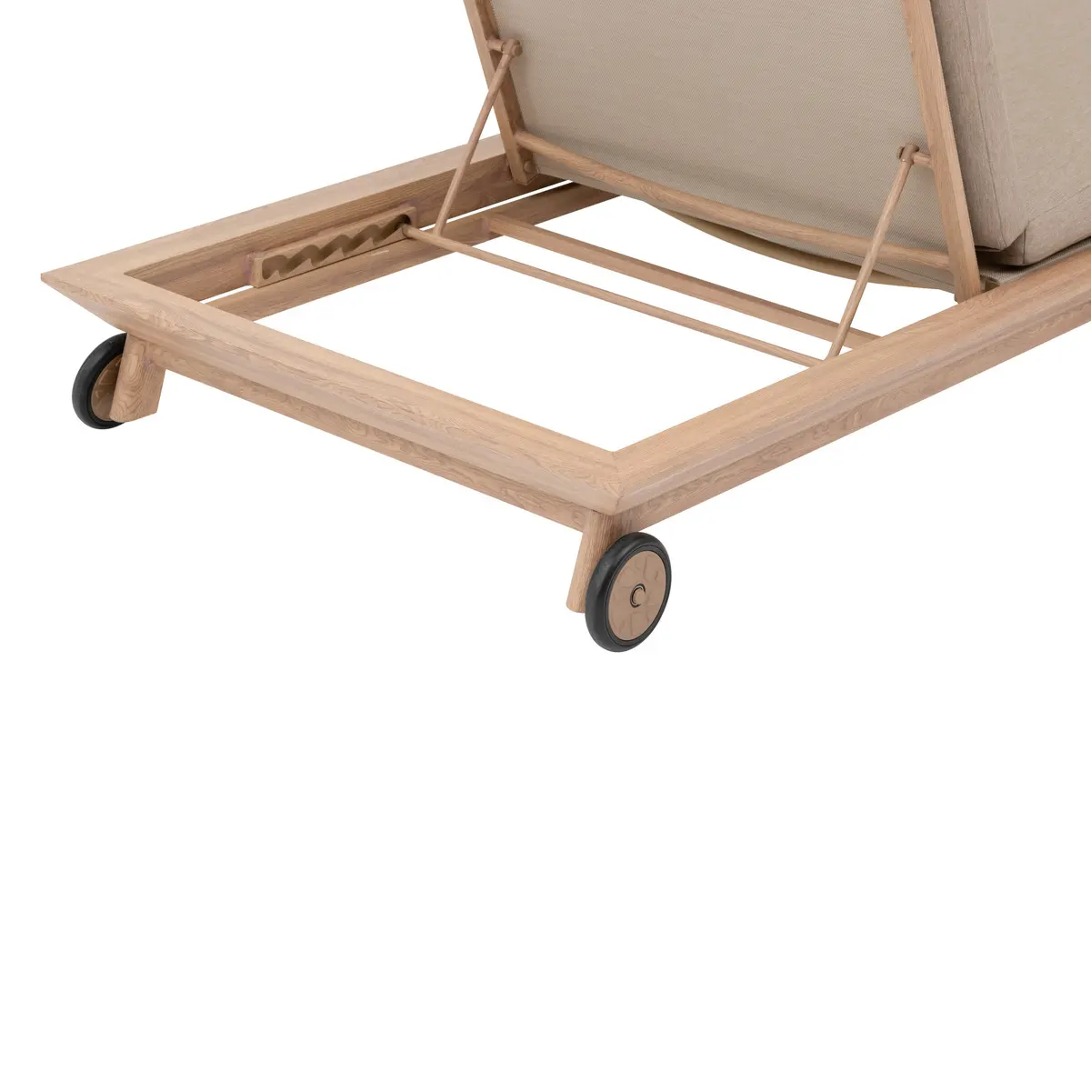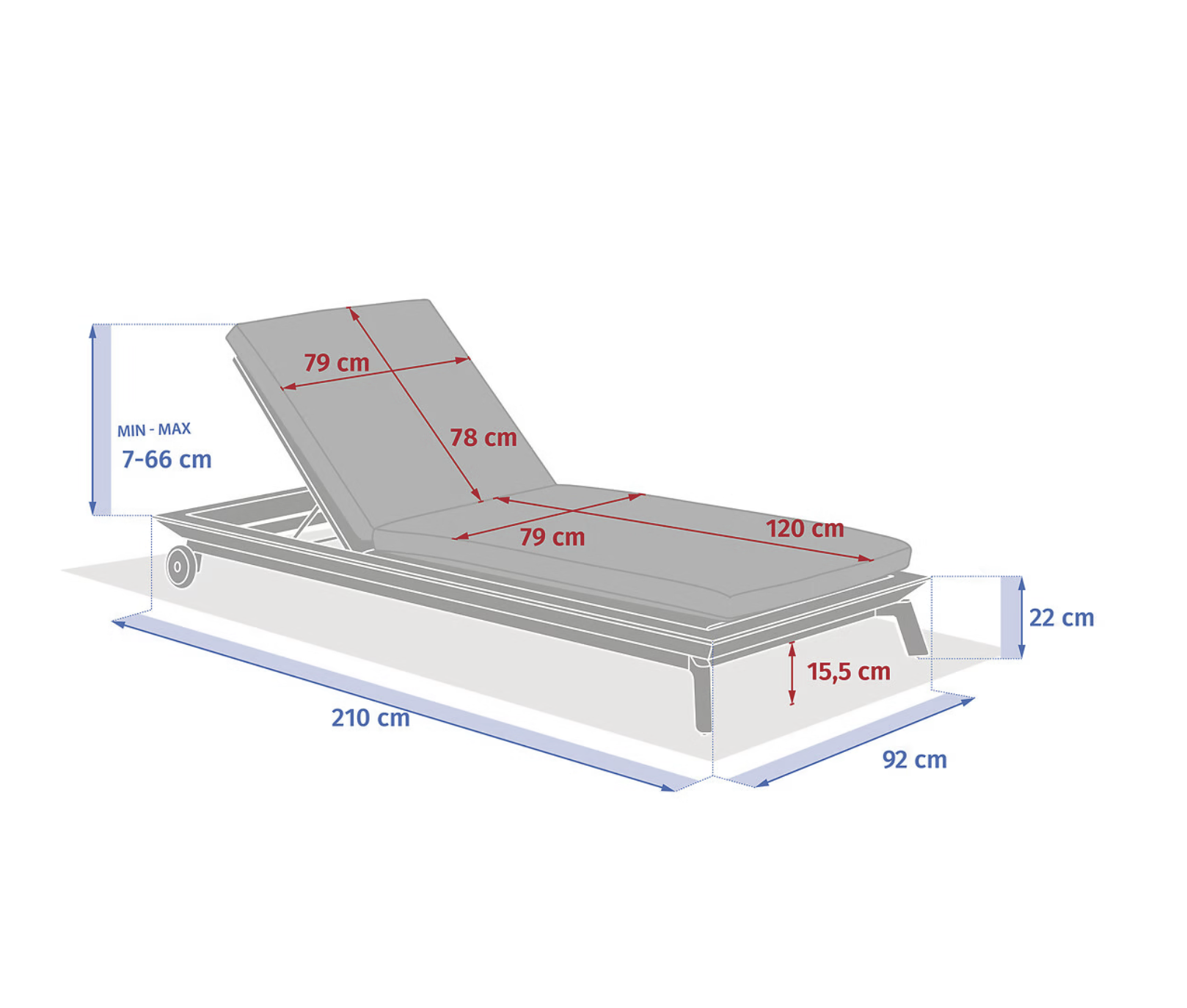 Leżanka wyposażona jest w regulowane oparcie, które pozwala dostosować pozycję do indywidualnych potrzeb. Dzięki dwóm kółkom łatwo ją przestawić w dowolne miejsce – w cieniu lub na słońcu. Zdejmowane poduszki ułatwiają czyszczenie.