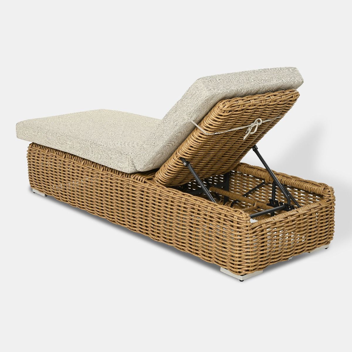 Aluminiowy fundament: Lekki i sztywny stelaż z aluminium malowanego proszkowo (w temperaturze do 210°C) jest całkowicie odporny na rdzę. Dzięki niemu leżak jest stabilny, a jednocześnie łatwy do przestawiania.