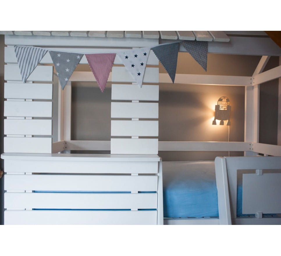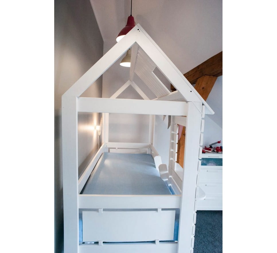 Domek łóżko można dowolnie dekorować i dopasowywać do charakteru i stylu pokoiku dziecka, nadając mu niepowtarzalnego, indywidualnego charakteru. Ślicznie prezentuje się podświetlony łańcuchem lampek, kolorową girlandą, natomiast osłonięty tiulem lub dekoracyjną tkaniną stanowi oryginalną kryjówkę.