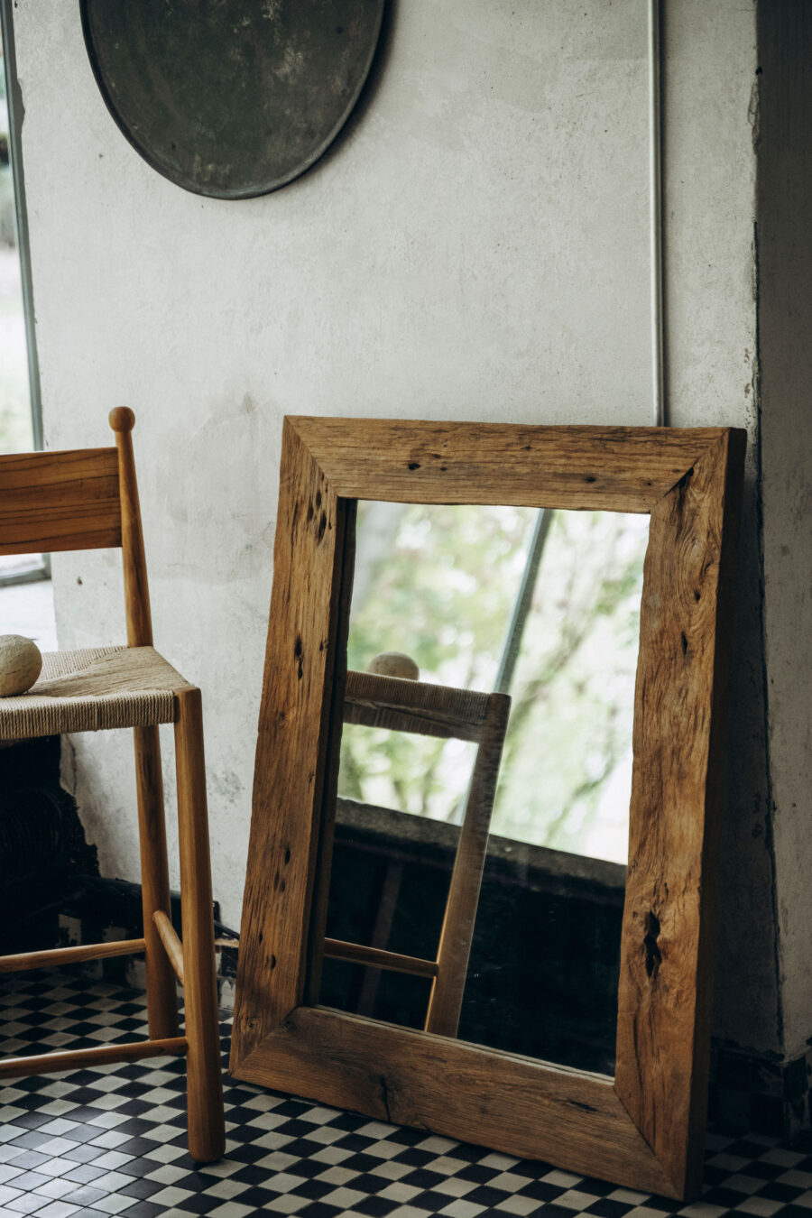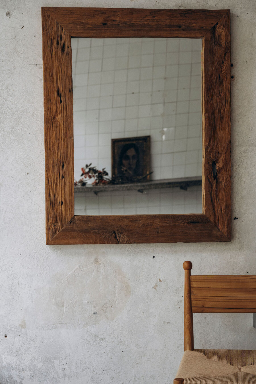 Organiczna estetyka: Lustro zachwyca prostą, prostokątną formą i pięknem autentycznego materiału.