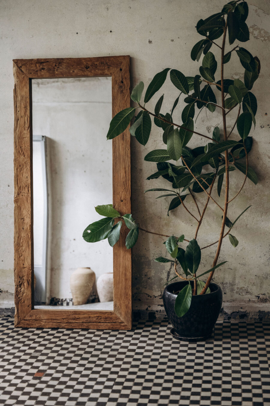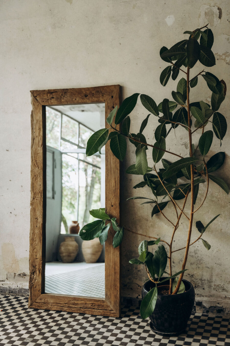 Lustro TIKI plastycznie komponuje się z różnymi aranżacjami, dodając wnętrzu unikatowego, ziemistego akcentu.