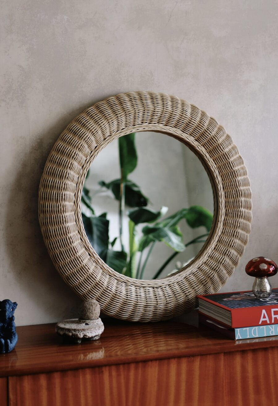 Unikatowość: Każde lustro jest ręcznie wykonywane, co oznacza, że poszczególne egzemplarze mogą się delikatnie różnić kolorem, splotem lub wymiarami (1–2 cm). Te drobne różnice podkreślają indywidualny charakter i autentyczne pochodzenie produktu.