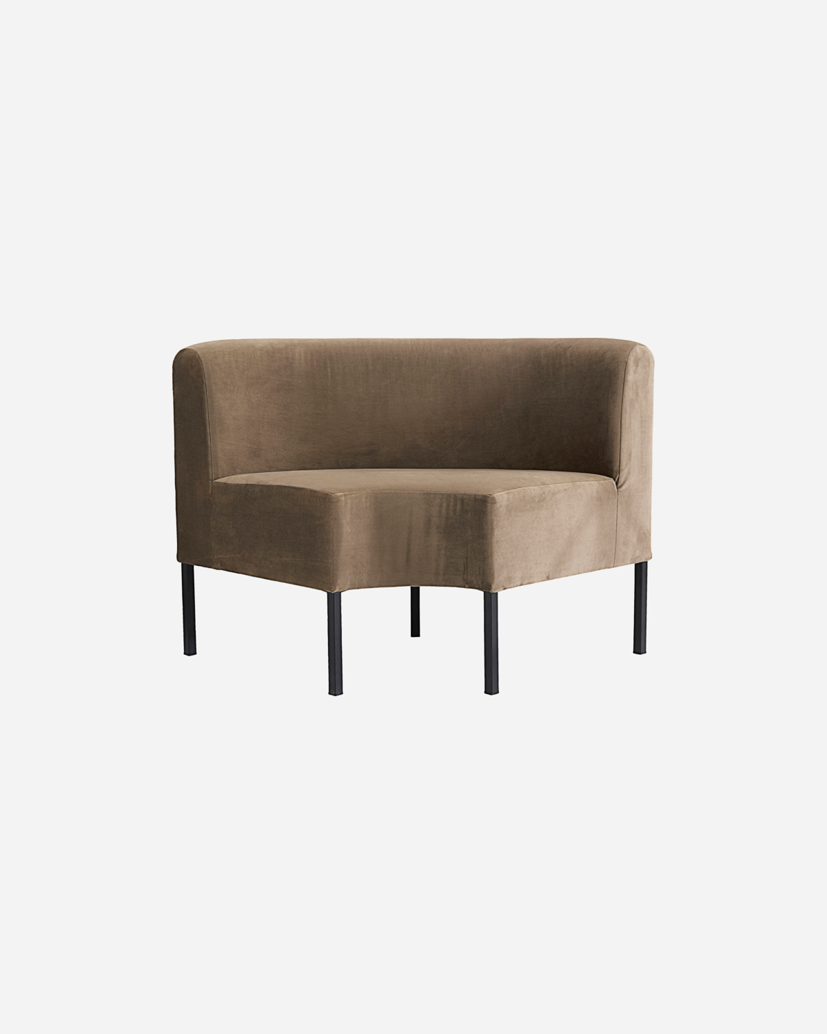 Stwórz idealną przestrzeń do relaksu dzięki narożnemu modułowi sofy, który łączy elegancję i funkcjonalność. Pokryty wysokiej jakości tkaniną w odcieniu ciepłego piasku, ten element doskonale wpisuje się w nowoczesne i klasyczne wnętrza. Solidne, czarne metalowe nogi nadają konstrukcji lekkości i stabilności, podkreślając jej minimalistyczny charakter. Możesz używać go samodzielnie jako wygodne siedzisko lub łączyć z innymi modułami, tworząc sofę dopasowaną do Twoich potrzeb. Idealny wybór dla tych, którzy cenią sobie styl, wygodę i możliwość personalizacji przestrzeni.
