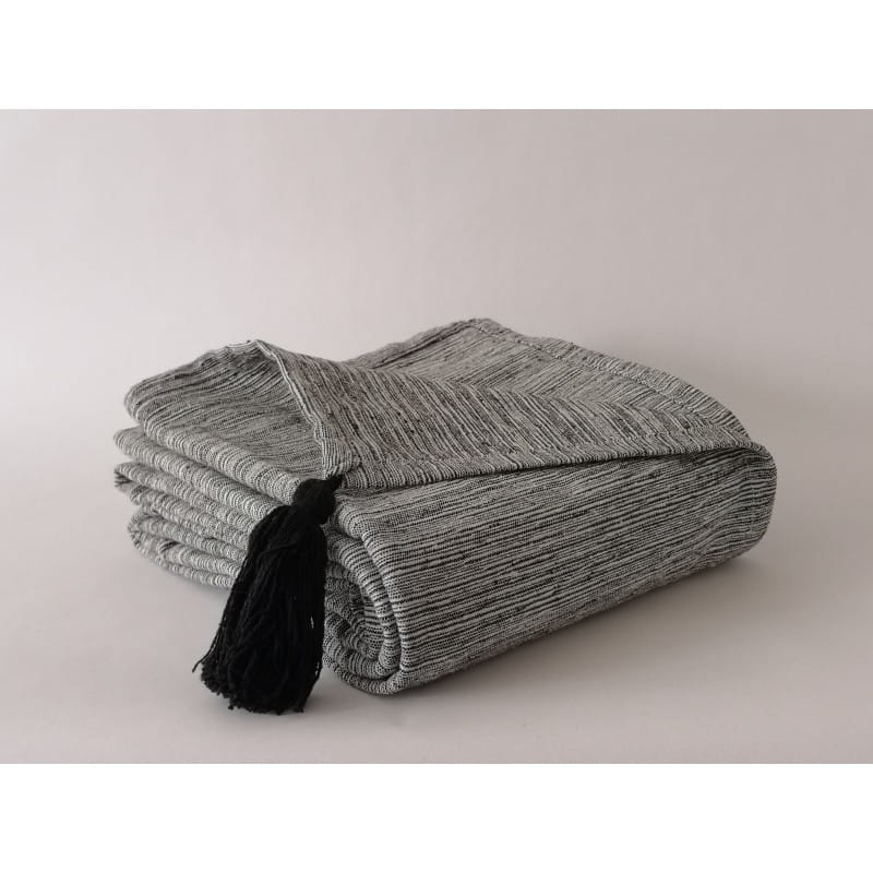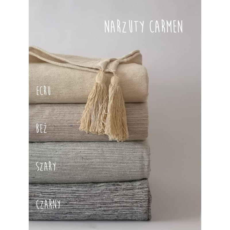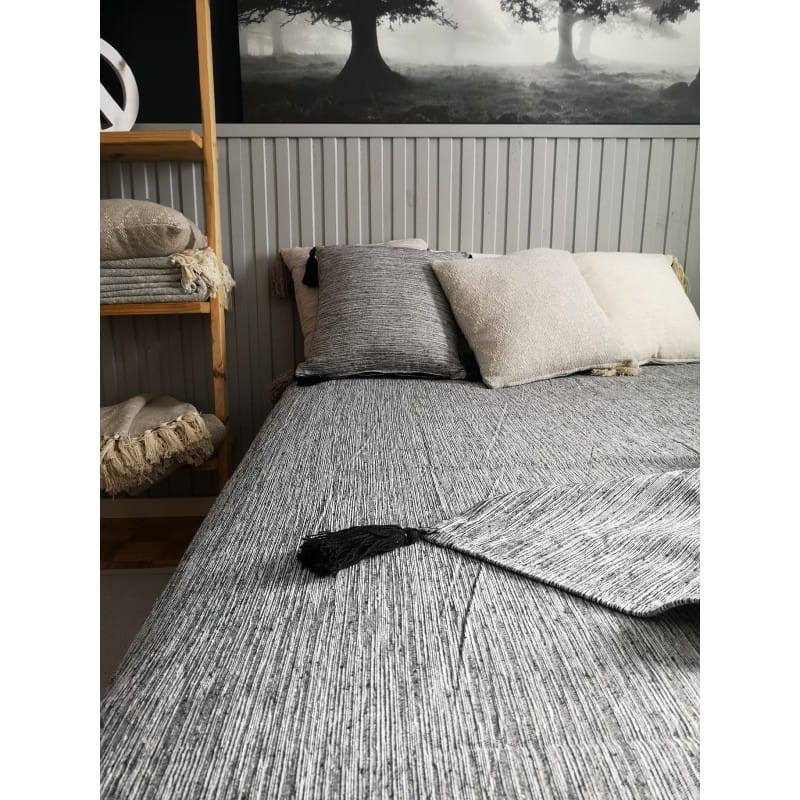 Dwustronna narzuta dekoracyjna, o wymiarach 200x220cm. Dzięki uniwersalnemu kolorowi narzuta dopełni każde wnętrze. Nie jest podatna na zaciąganie się. Produkt wykonany na krosnach z bawełny z recyklingu.