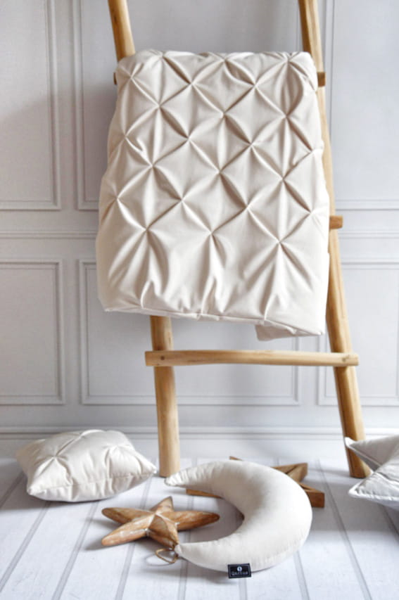 Narzuta na łóżko dziecięce jest nieodzownym elementem w pokoju każdego malucha. Pozwala zachować porządek w łóżeczku i dodatkowo jest wspaniałą ozdobą całego wnętrza. Nasza welurowa narzuta jest dwustronna. Z jednej strony jest ręcznie pikowana w eleganckie romby, a z drugiej jest gładka. Dzięki wysokiej jakości włókniny, jest niezwykle sprężysta, miękka i zachowuje swoją grubość nawet po wielu praniach. Narzuta jest szyta i pikowana ręcznie dzięki czemu każda jest wyjątkowa i niepowtarzalna. Nasza pikowana narzuta jest wielofunkcyjna. Dzięki niezwykle grubemu wypełnieniu, znajduje zastosowanie również jako mata do zabawy, pled, kołderka czy nawet kocyk piknikowy. Dzięki możliwości wyboru spośród kilkunastu kolorów, z pewnością dobierzesz idealną narzutę. Możesz również dobrać dekoracyjne poduszki, które dopełnią wyglądu całego wnętrza.