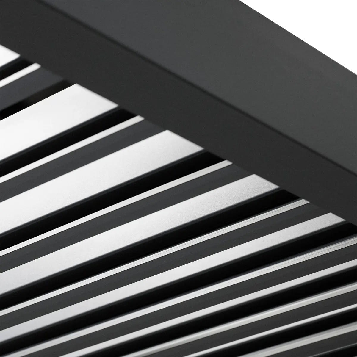 Evora Grand w eleganckim grafitowym wykończeniu to nie tylko zadaszenie – to portal do komfortu na świeżym powietrzu, który reaguje na potrzebę chwili. Solidna konstrukcja z aluminium zabezpieczonego powłoką epoksydową kryje w sobie ukryty silnik, umożliwiający elektryczną regulację kąta nachylenia lameli za pomocą pilota. W mgnieniu oka zmieniasz nastrój przestrzeni: od pełnego słońca, poprzez wentylowany półcień, aż po całkowite osłonięcie przed deszczem.