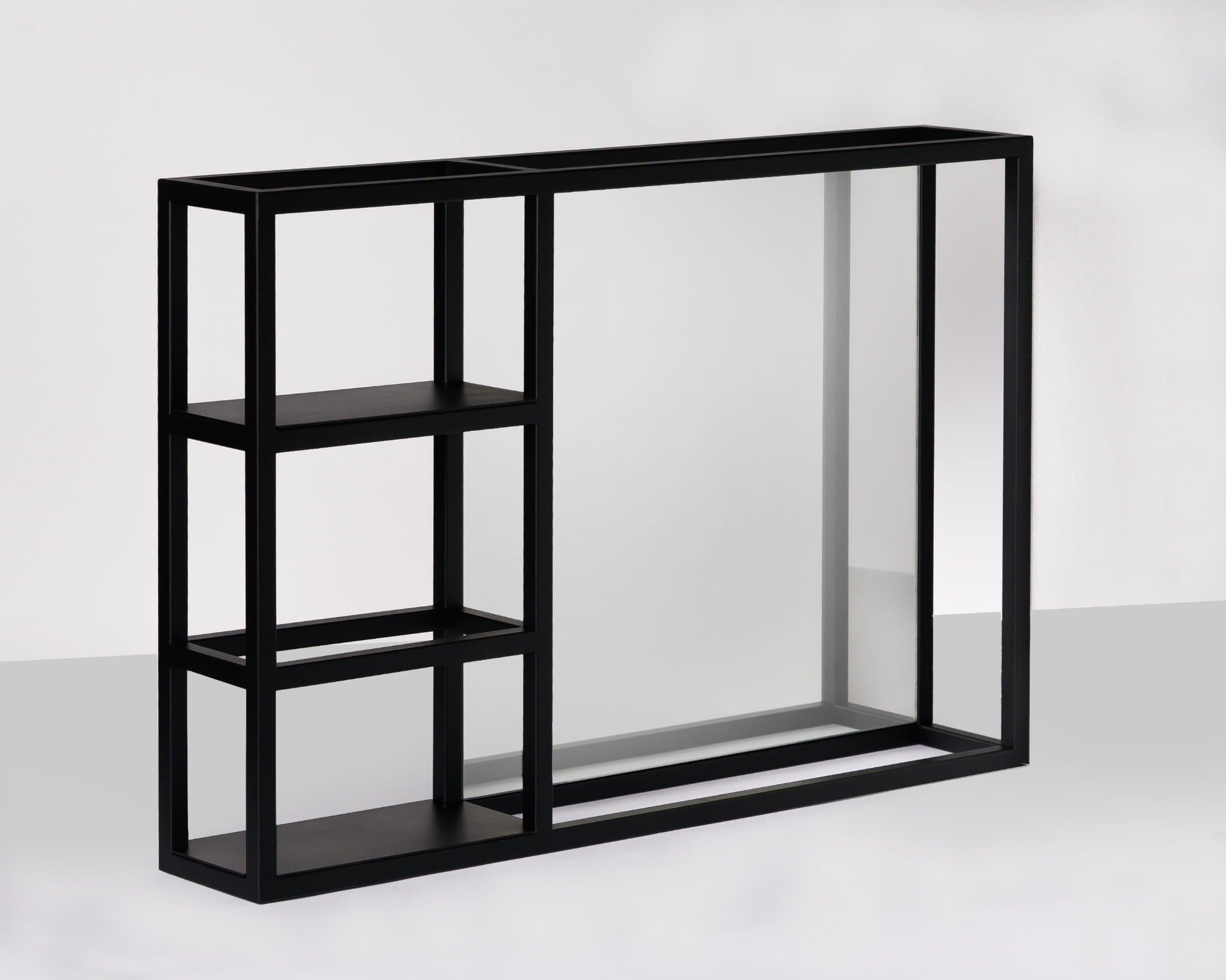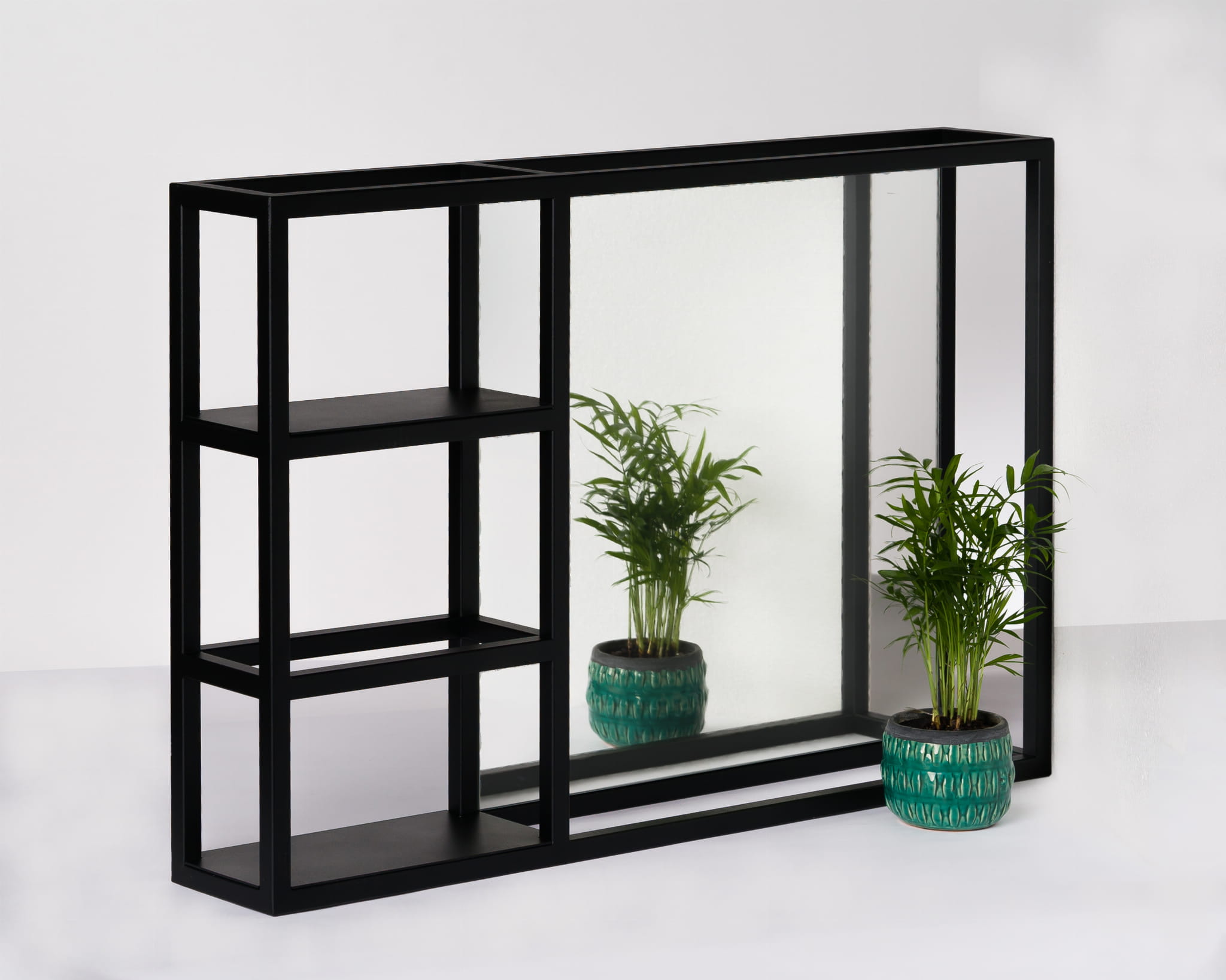 Wielofunkcyjny wiszący regał FLAVIO, oprócz lustra, dostarczy miejsca na kosmetyki i ręczniki, a nawet biżuterię.