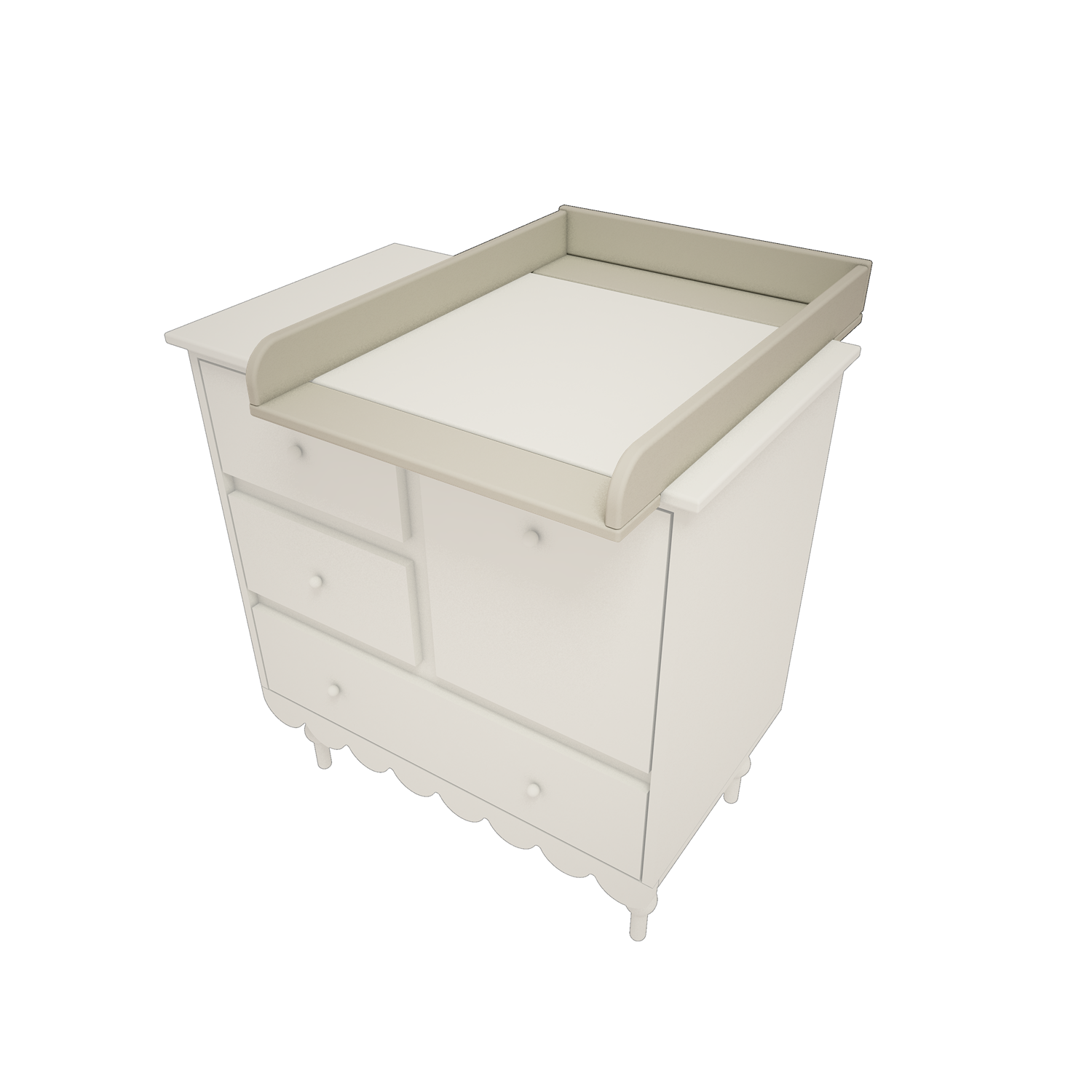Przewijak w kolekcji BABUSHKA w sposób bardzo wygodny montowany jest na komodę.