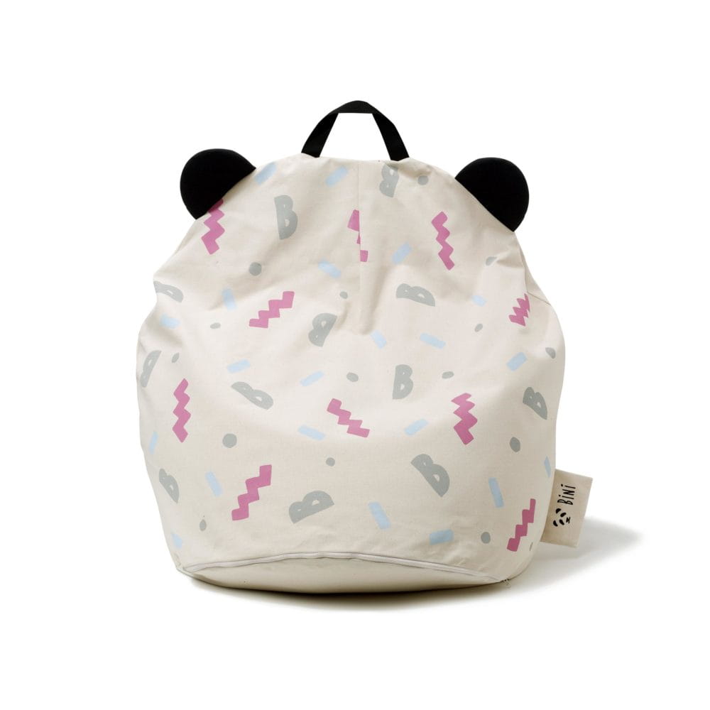 Nadruki wykonane są metodą sitodruku – ekologicznymi farbami wodnymi. Puf BINI z przodu ma naszywany pyszczek pandy, z tyłu NASZ NOWY nadruk B-GIRL i czarny uchwyt.