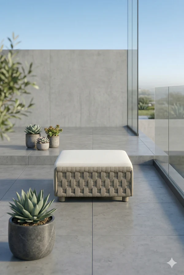 Szampańska pufa Serano Lounge to esencja nowoczesnego podejścia do wypoczynku. Zaprojektowana jako inteligentne dopełnienie kolekcji, może pełnić funkcję komfortowego podnóżka, niezależnego siedziska dla gości, a nawet stylowego stolika kawowego (po dodaniu tacy). Jej świetlisty, szampański odcień wprowadza do przestrzeni luksusowy spokój i optycznie powiększa taras czy balkon.