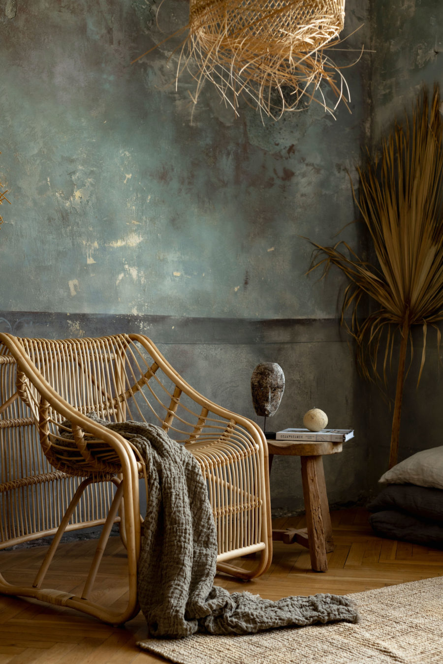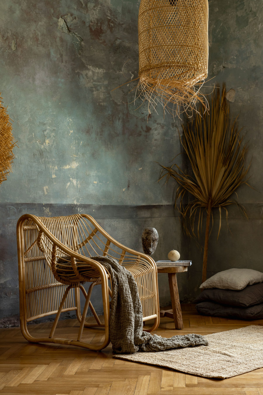 Naturalny i stylowy: Ciepły, piaskowy odcień i naturalny materiał sprawiają, że fotel doskonale komponuje się z wnętrzami w stylu boho, naturalnym, a także minimalistycznym. Idealnie wygląda w połączeniu z tekstyliami z surowej bawełny.