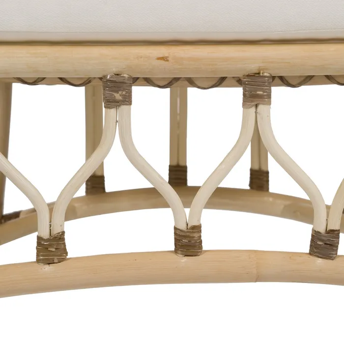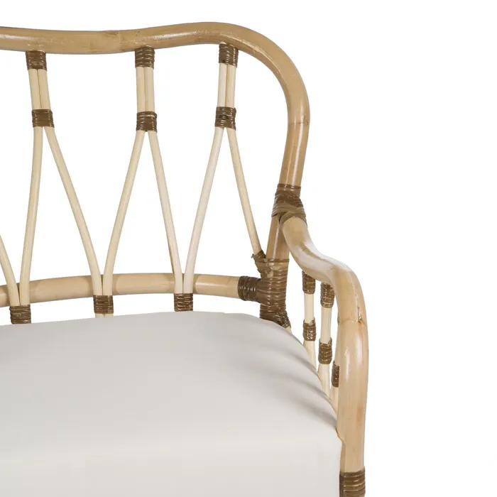 Fotel posiada ręcznie wykonaną konstrukcję rattanową w kolorze naturalnym.