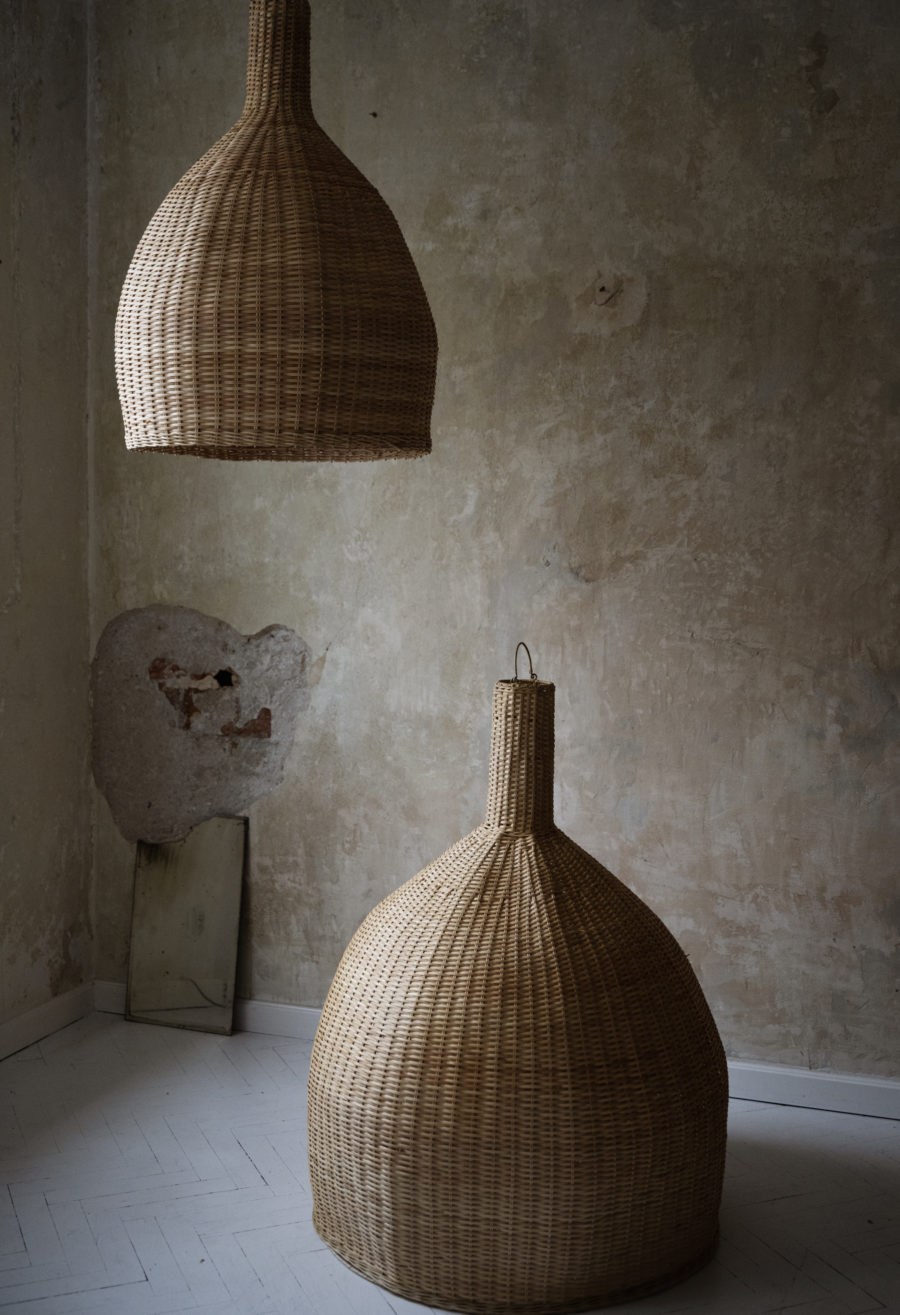 Dostępny w dwóch rozmiarach: M: 60 × 80 cm oraz L: 80 × 100 cm (średnica × wysokość). Każdy egzemplarz jest unikatowy, ręcznie wyplatany i w pełni naturalny.