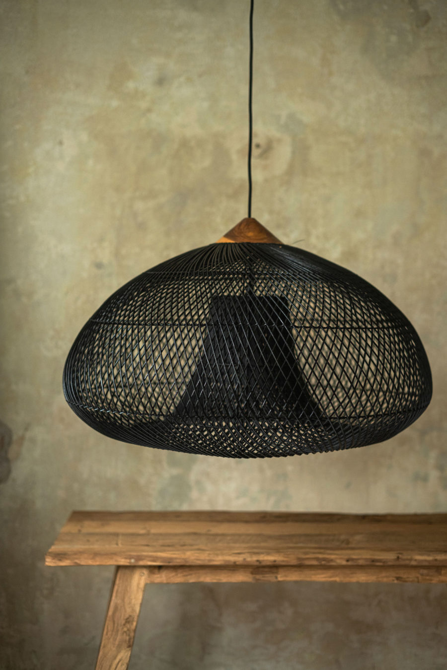 Rattanowy klosz z drewnem teakowym - XL - Czarny - CRATER I Bally Hands