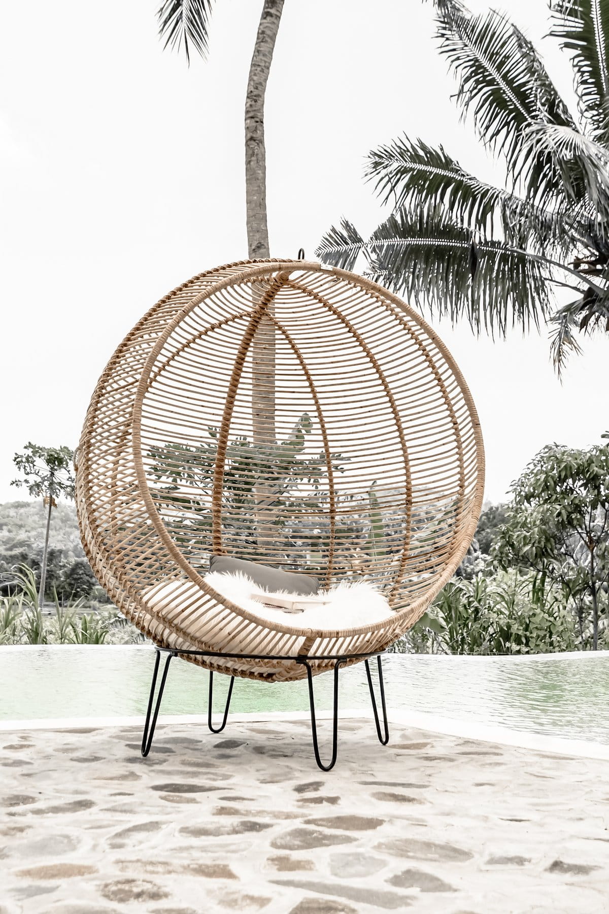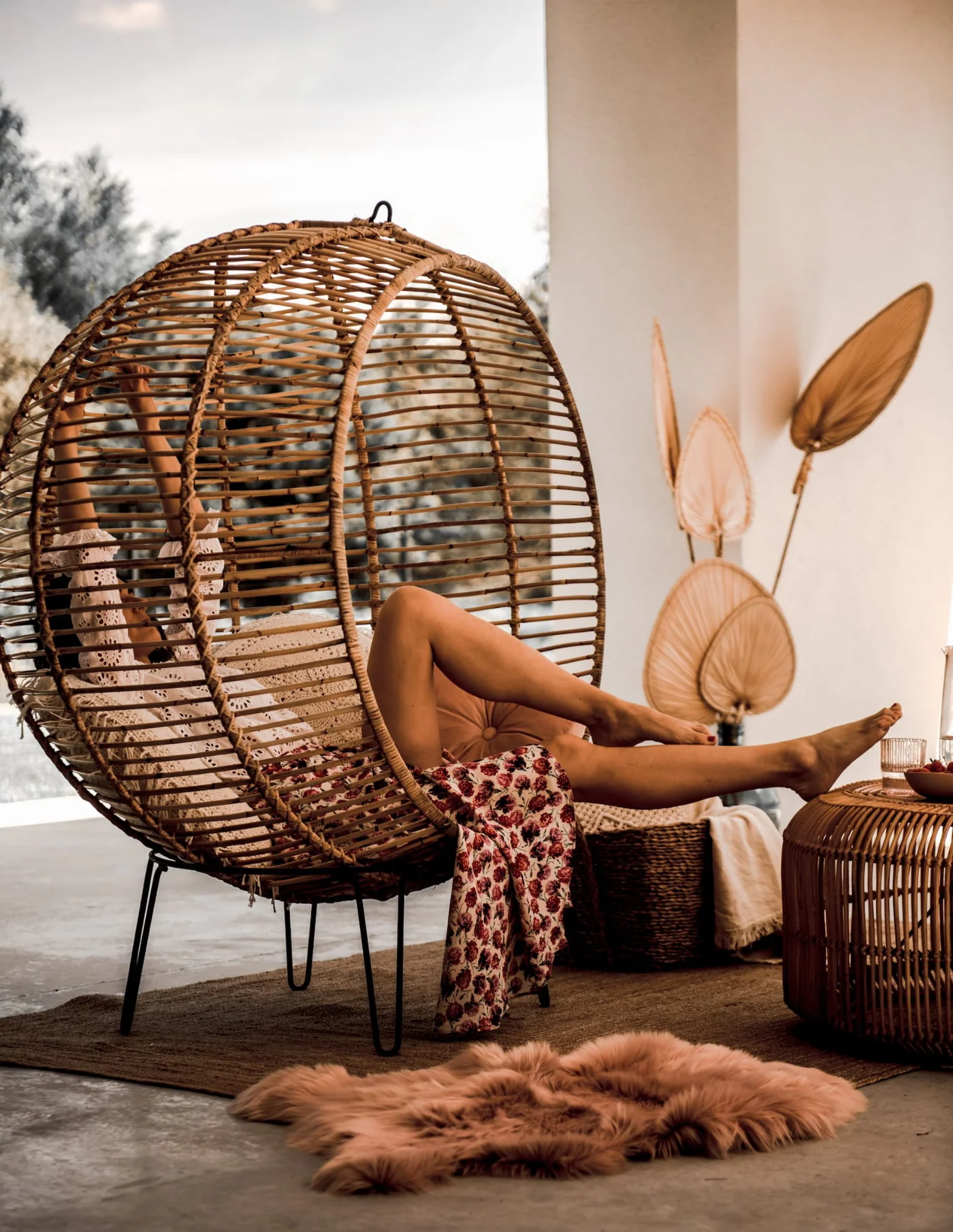 Rattanowy wiszący i stojący fotel Ball