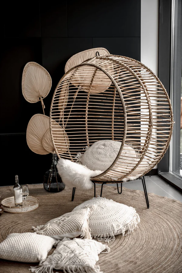 W tym fotelu można zapomnieć się na długie chwile. Może on pełnić rolę zarówno fotela stojącego, jak i wiszącego, bujanego. Jego designerski kształt przykuwa uwagę. Fotel jest wykonany w 100% z naturalnego rattanu. Niezwykle komfortowy, zachwyca wielofunkcyjnością i oryginalnością. Dzięki niemu, pozornie zwyczajne czynności, takie jak czytanie książki czy słuchanie muzyki, staną się niezwykłą przyjemnością.