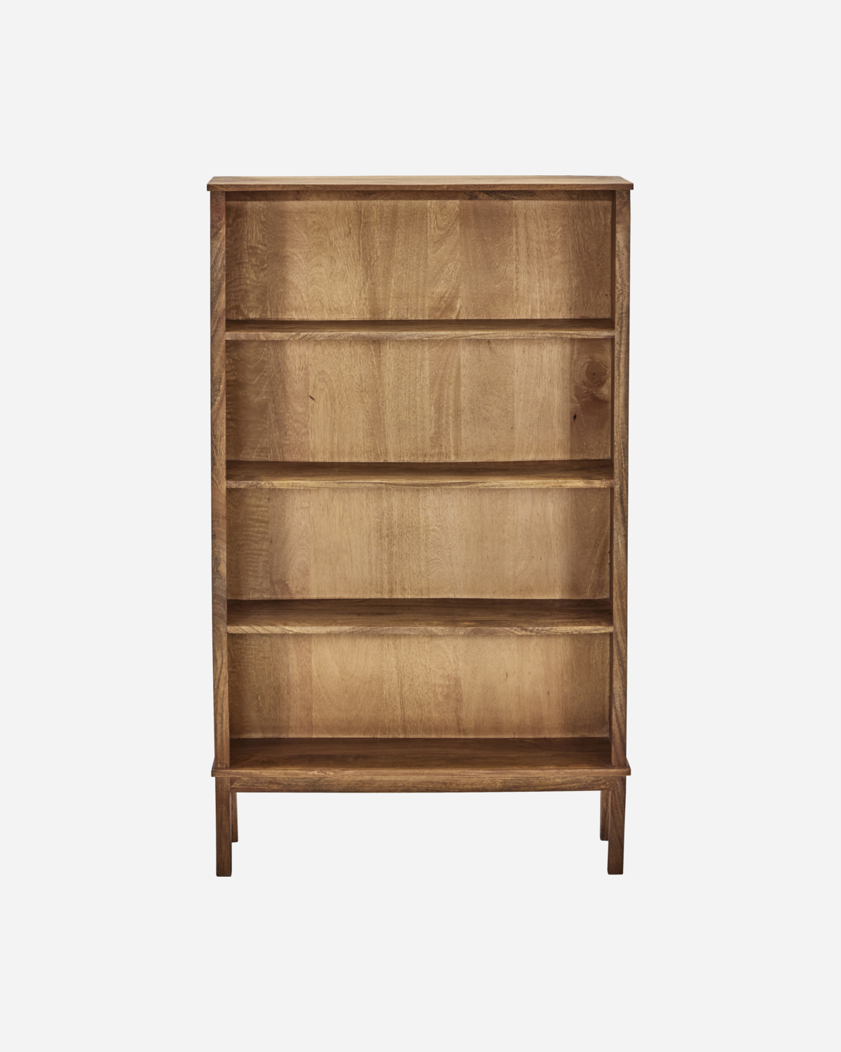 Wykonany z drewna mango, w bogatym antycznym brązowym odcieniu, ten ręcznie wykonany regał, emanuje ponadczasową elegancją. Jego wyrafinowane, ryflowane panele boczne dodają stylowego akcentu, dzięki czemu jest to ekskluzywny element do salonu lub jadalni. Wystaw książki, kosze lub przedmioty dekoracyjne, takie jak rzeźby i wazony, na przestronnych półkach i ciesz się ponadczasowym meblem w swoim domu.