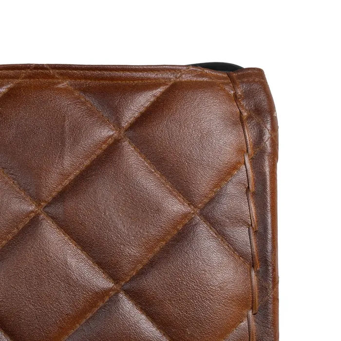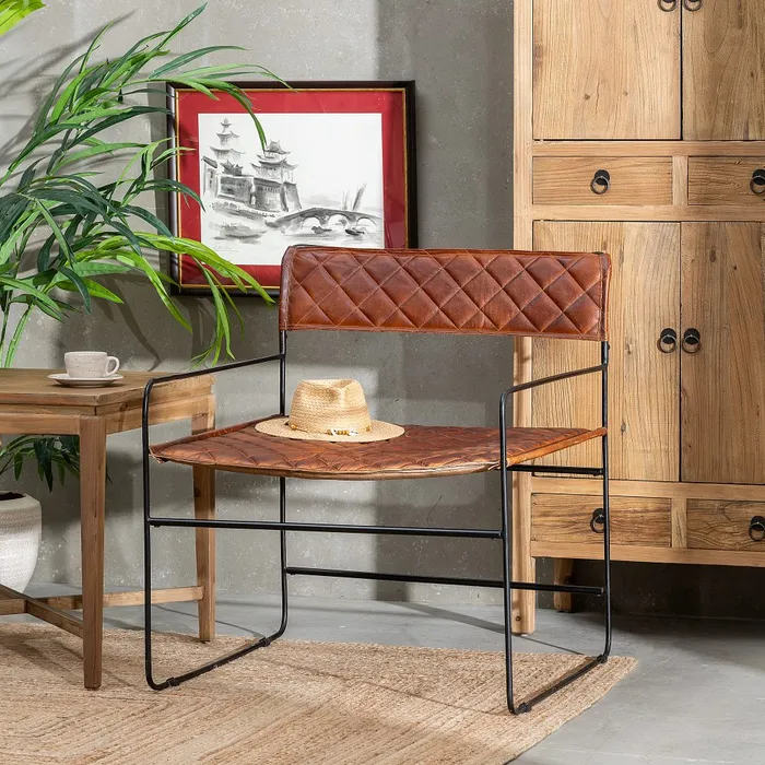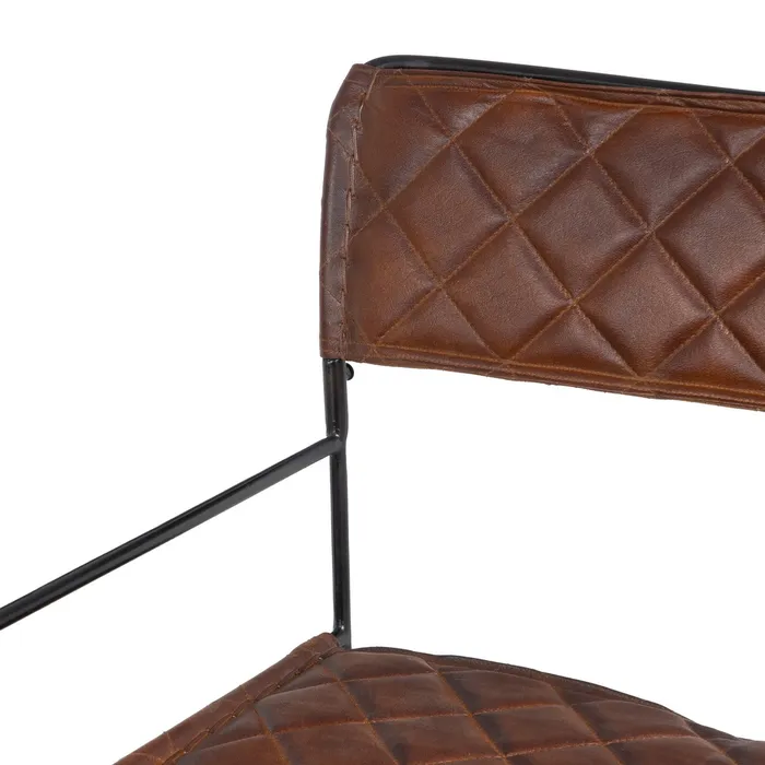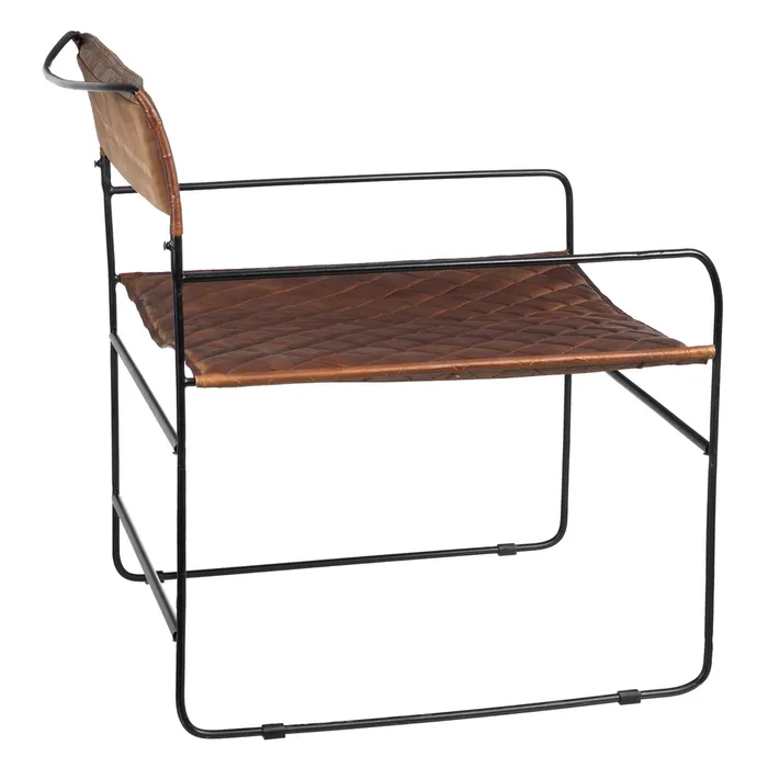 Fotel o metalowej konstrukcji z siedziskiem i oparciem z brązowej, tłoczonej skóry to elegancka i stylowa propozycja, łącząca solidność metalu z luksusowym wyglądem skóry. Metalowa rama fotela zapewnia trwałość i nowoczesny charakter. Tłoczona skóra, w odcieniu głębokiego brązu, nie tylko przyciąga wzrok, ale również nadaje meblowi ciepła i wyjątkowego charakteru. Jej delikatne wzory tłoczenia wprowadzają subtelną fakturę, która dodaje elegancji, a jednocześnie sprawia, że fotel staje się bardziej komfortowy i przyjemny w użytkowaniu.